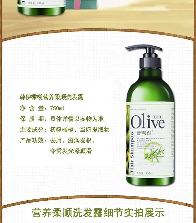 商品名称:韩伊 橄榄营养柔顺洗发露 滋养头皮 均衡营养 500ml/750ml