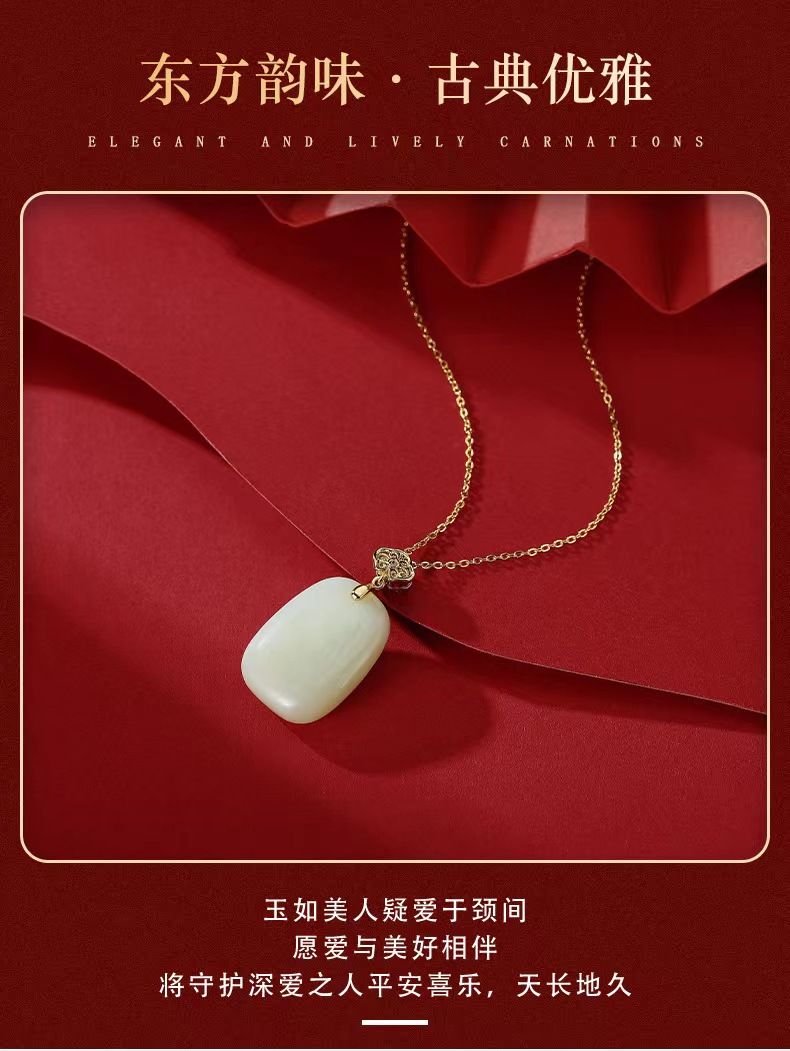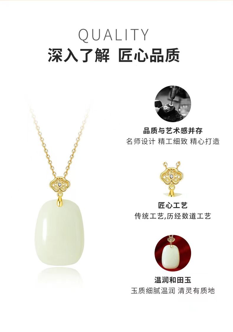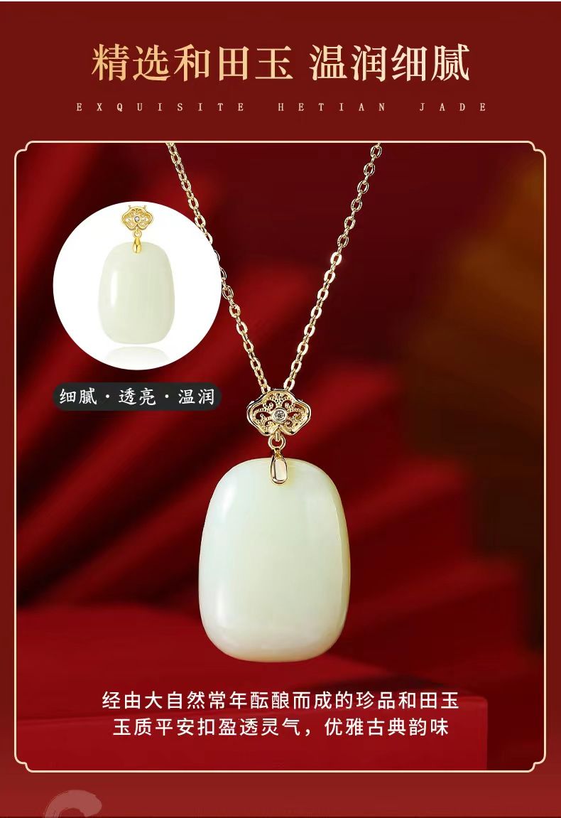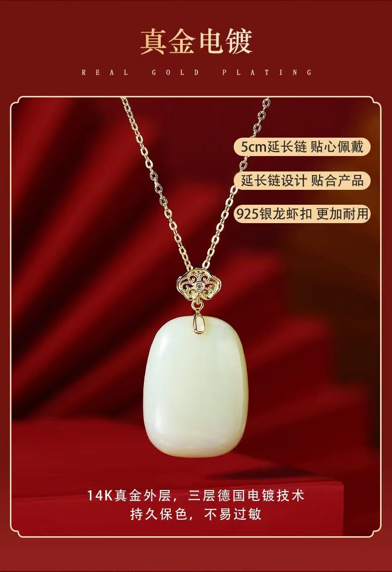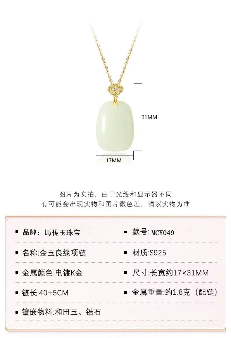 商品名称:馬传玉 中国风系列 金玉良缘无事牌和田玉吊坠 MCY049