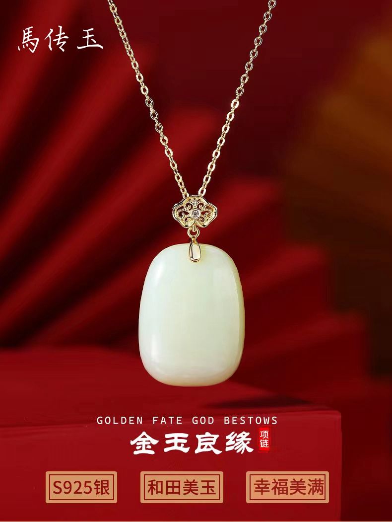 馬传玉 中国风系列 金玉良缘无事牌和田玉吊坠 MCY049
