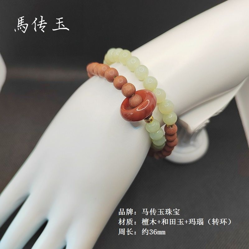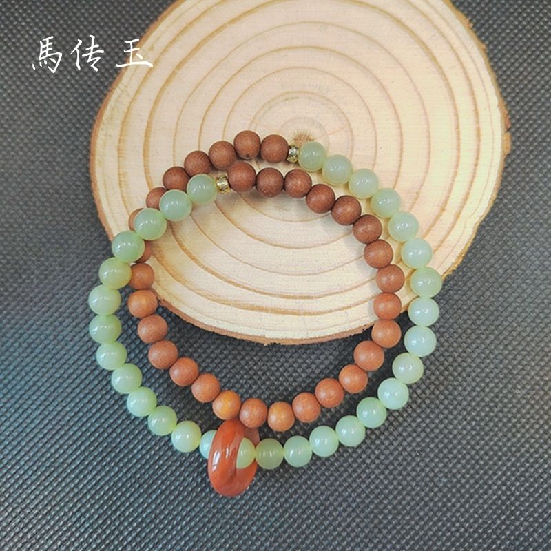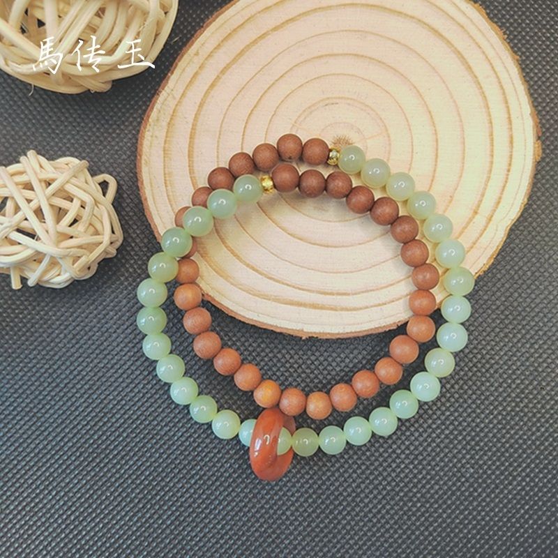 商品名称:馬传玉 檀木和田玉双圈手串 MCY042