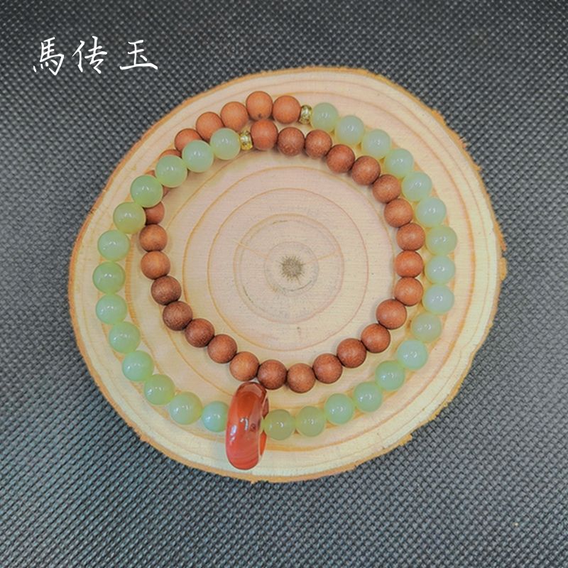 馬传玉 檀木和田玉双圈手串 MCY042
