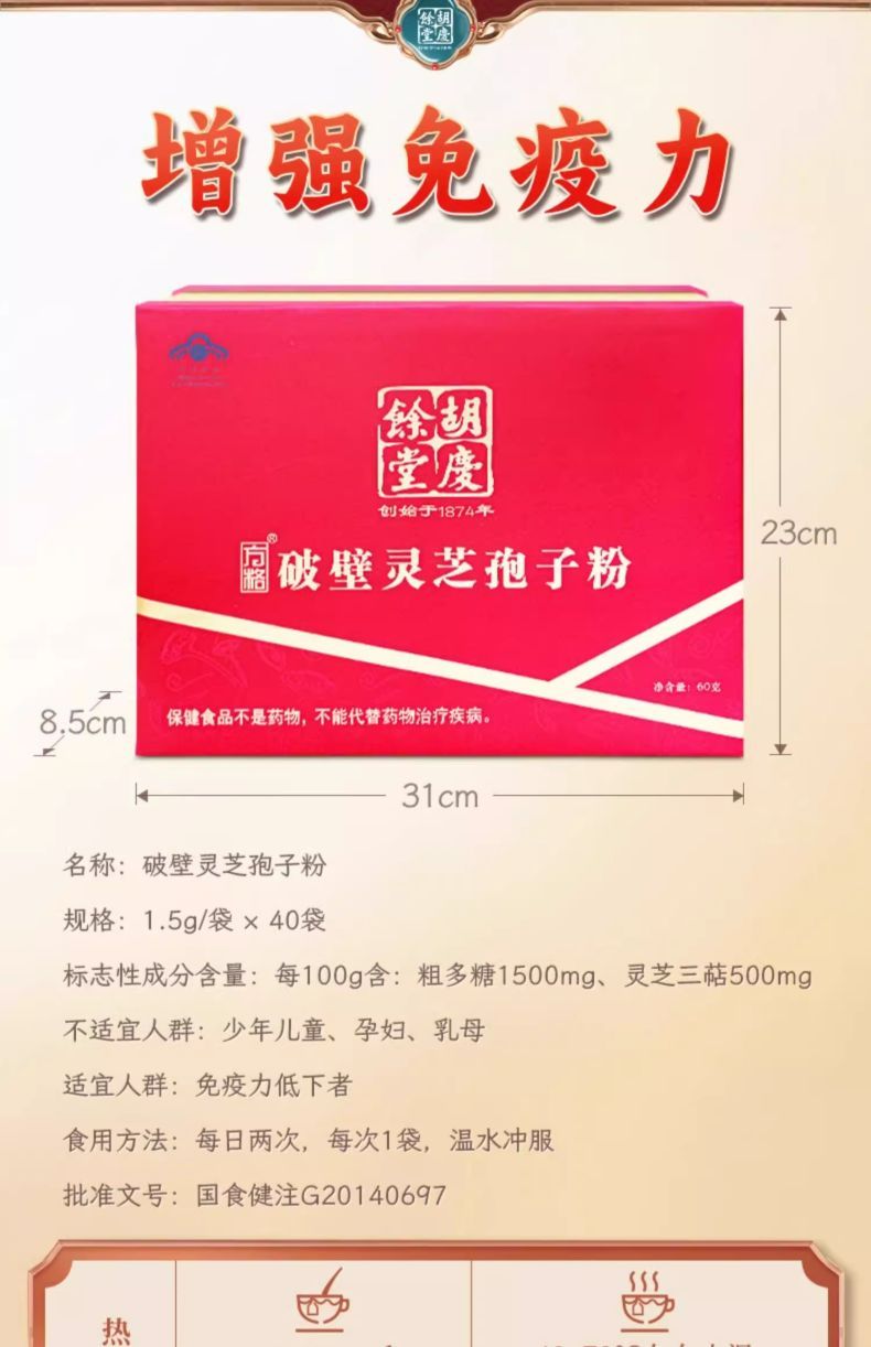 商品名称:〖商超同款〗胡庆余堂 方格破壁灵芝孢子粉 营养保健滋补礼盒
