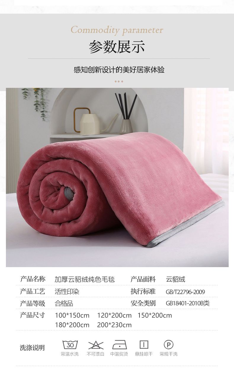商品名称:舒正 纯色高奢毛毯-豆沙 SZMT-0004