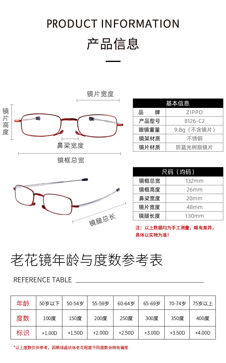 商品名称:新款时尚防蓝光老花镜女士高清显年轻可折叠便携高级感老花眼镜男 942494