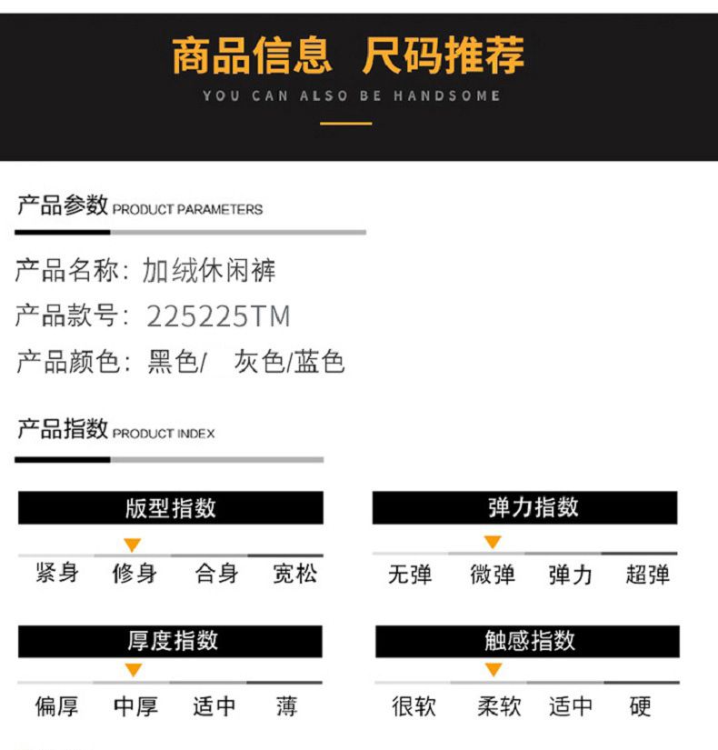 商品名称:曼西尔奴男士商务休闲冬季加绒加厚时尚百搭保暖直筒休闲裤225225TM