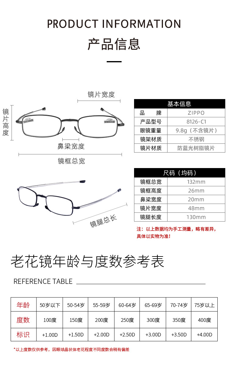 商品名称:新款时尚防蓝光老花镜女士高清显年轻可折叠便携高级感老花眼镜男 764766
