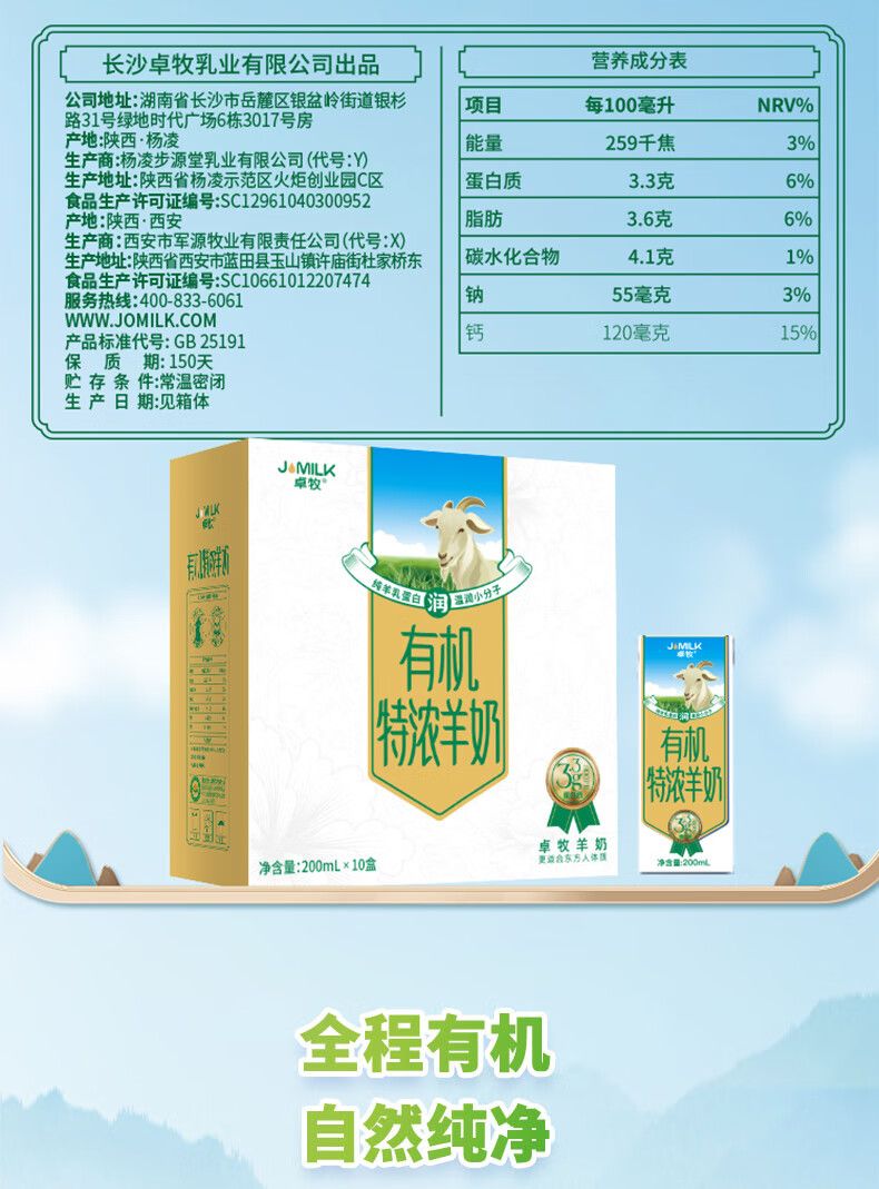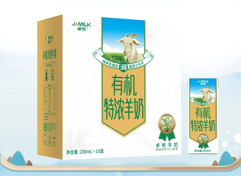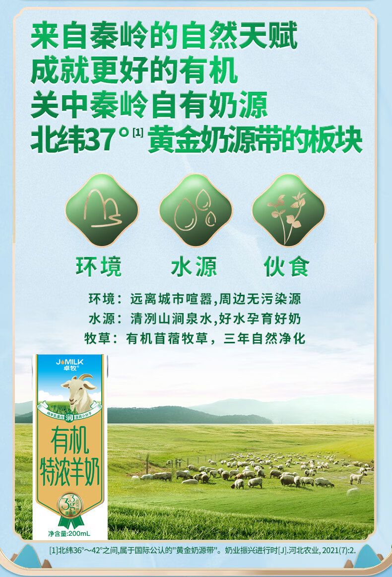 商品名称:卓牧(JOMILK)有机特浓羊奶儿童成人早餐A2羊乳蛋白200ml*10送礼盒调制乳