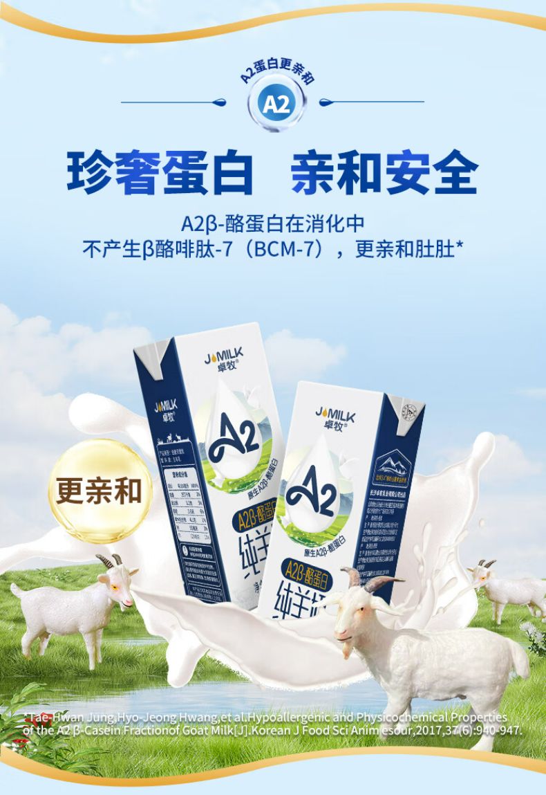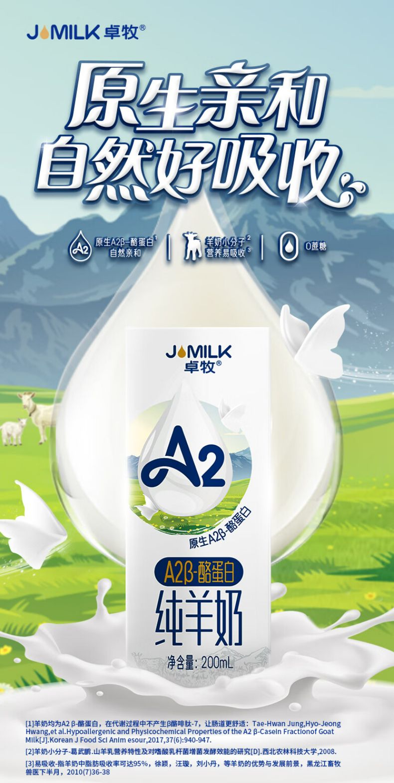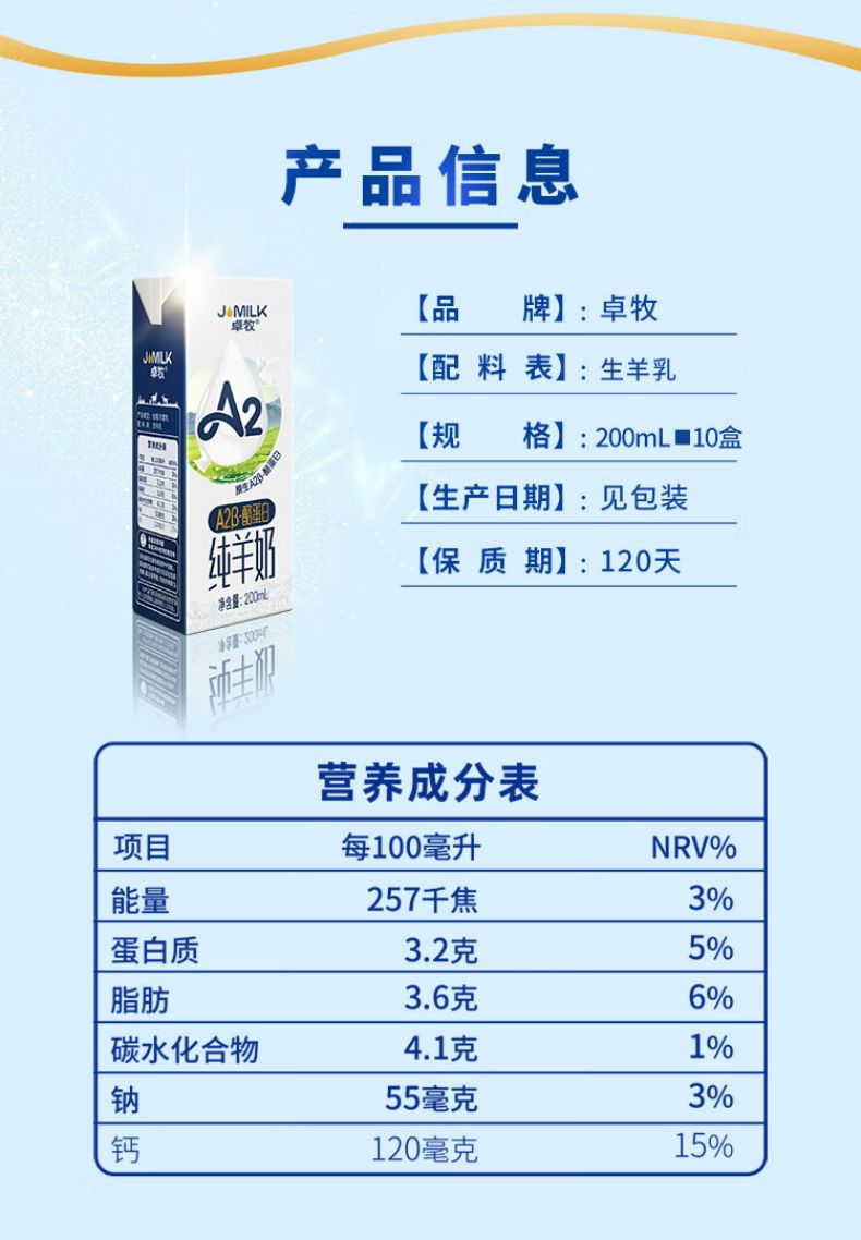 商品名称:卓牧(JOMILK)A2β酪蛋白纯羊奶200ml*10 礼盒 山羊奶儿童成人天然