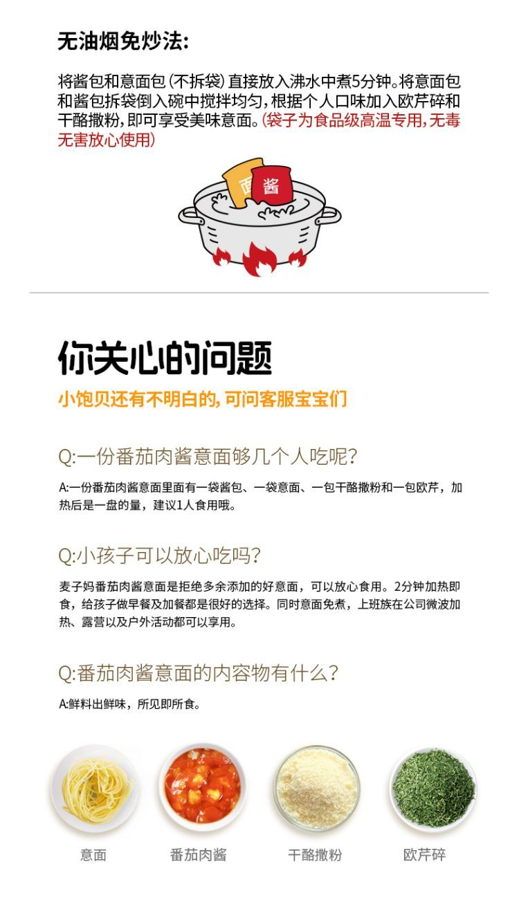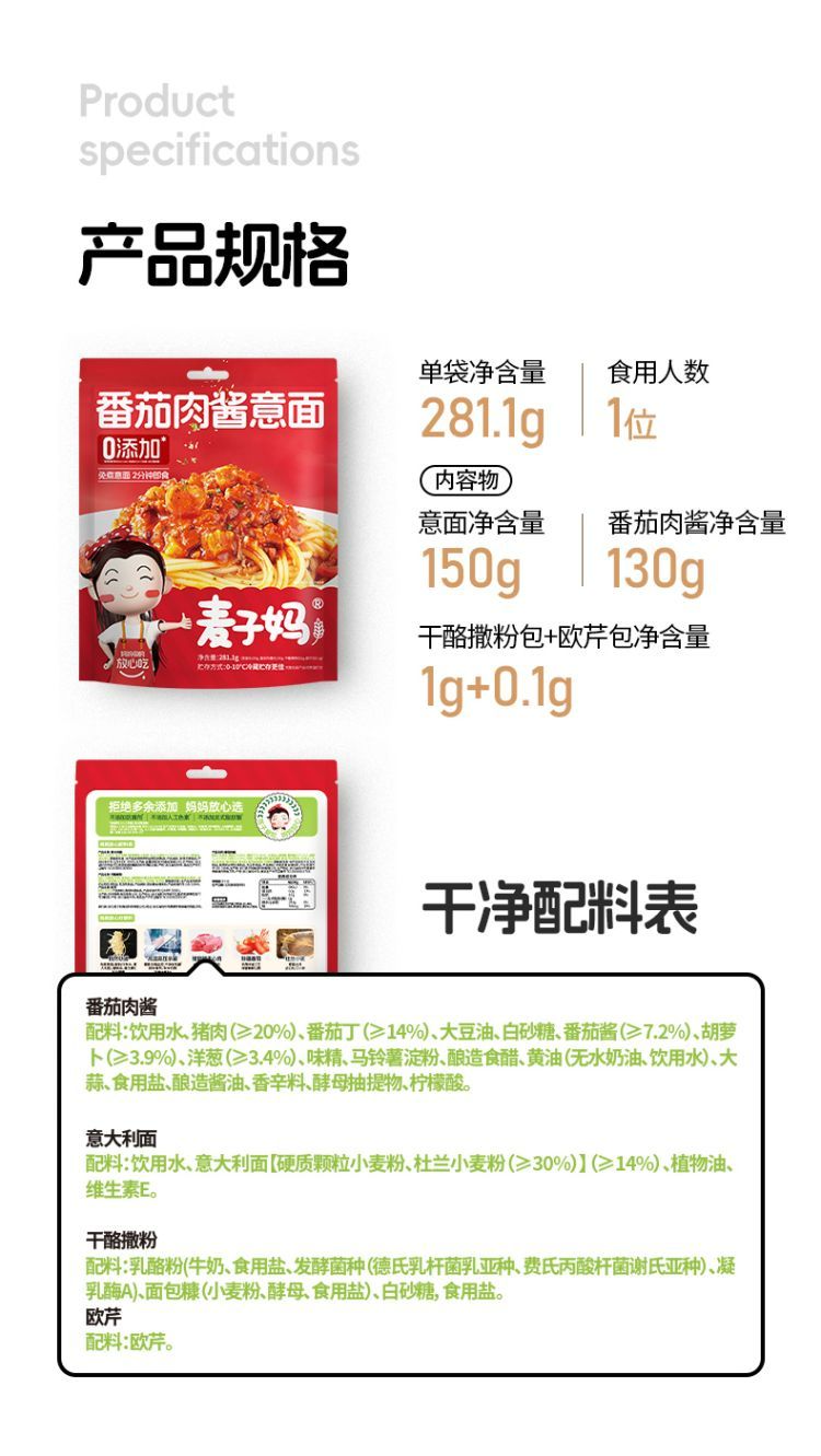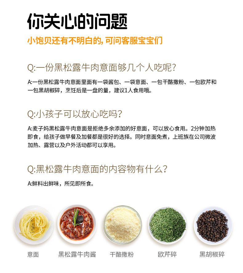 商品名称:麦子妈 意大利面 番茄肉酱/黑松露牛肉意面儿童意面免煮速食拌面通心粉 新日期