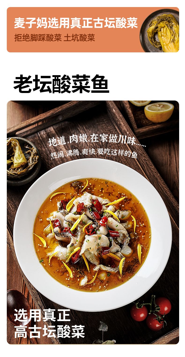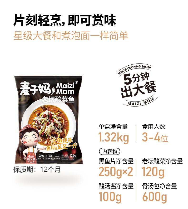 商品名称:麦子妈老坛酸菜鱼 酸辣味 1.32kg*3袋 冷冻黑鱼片预制菜 可做火锅汤底