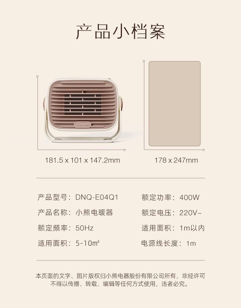 商品名称:小熊 家用电暖器 DNQ-E04Q1-P01 办公室台式可挂桌面小型暖风机
