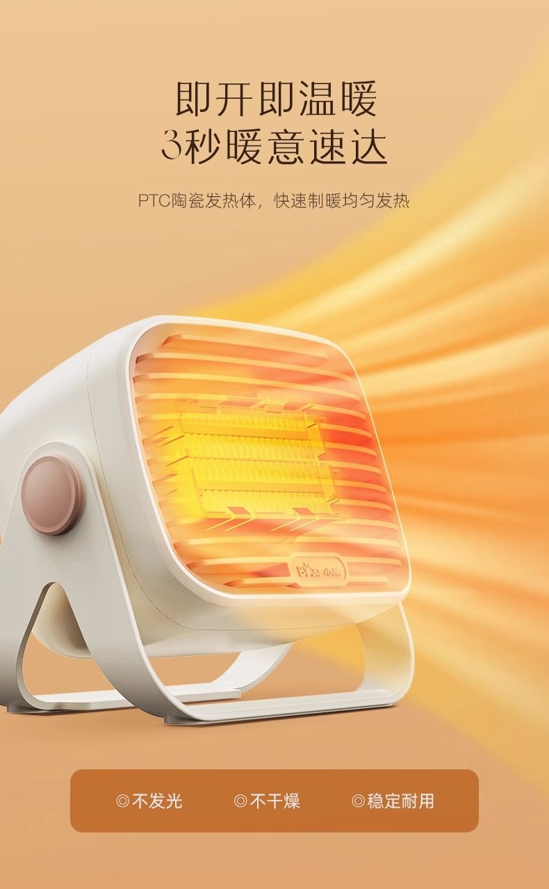 小熊 家用电暖器 DNQ-E04Q1-P01 办公室台式可挂桌面小型暖风机