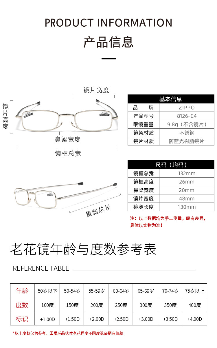 商品名称:新款时尚防蓝光老花镜女士高清显年轻可折叠便携高级感老花眼镜男 926110