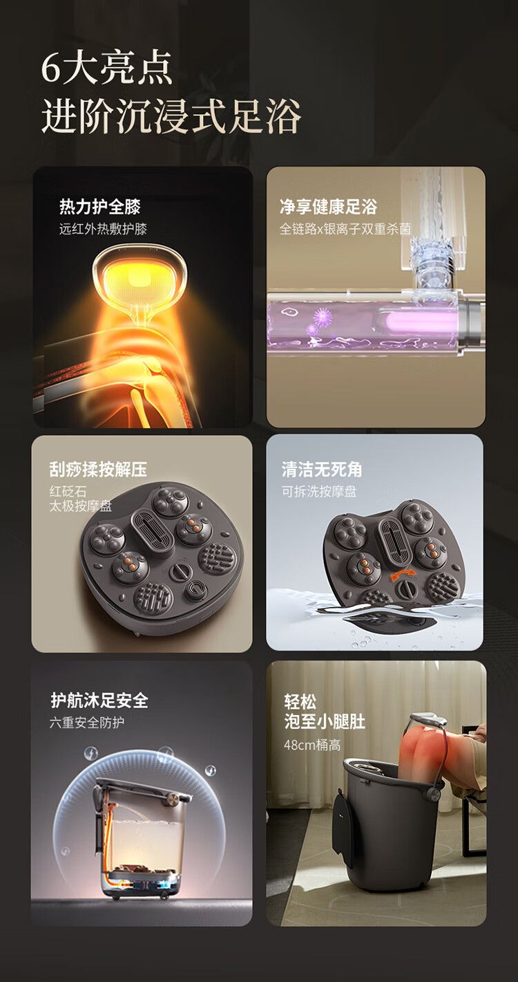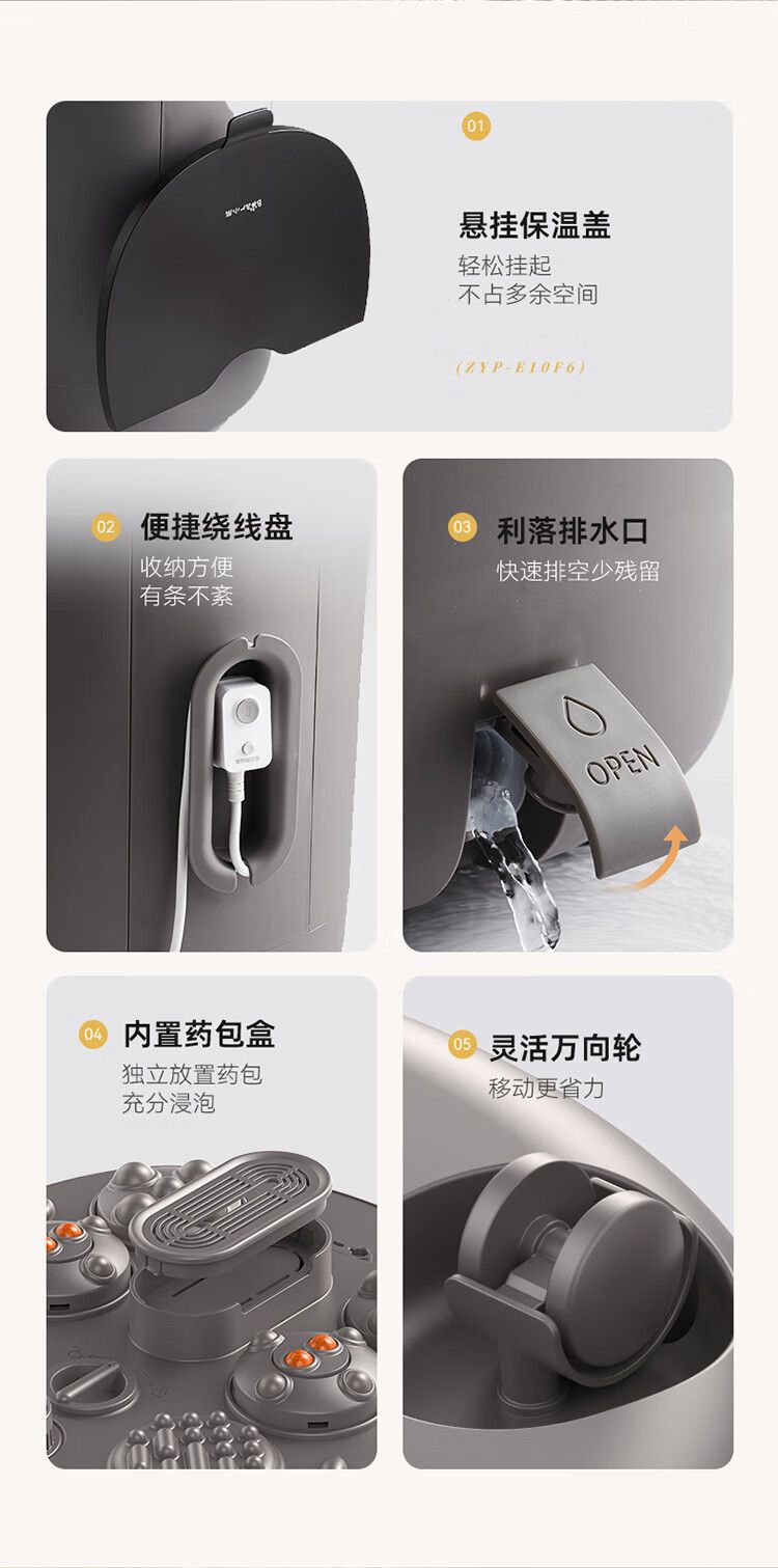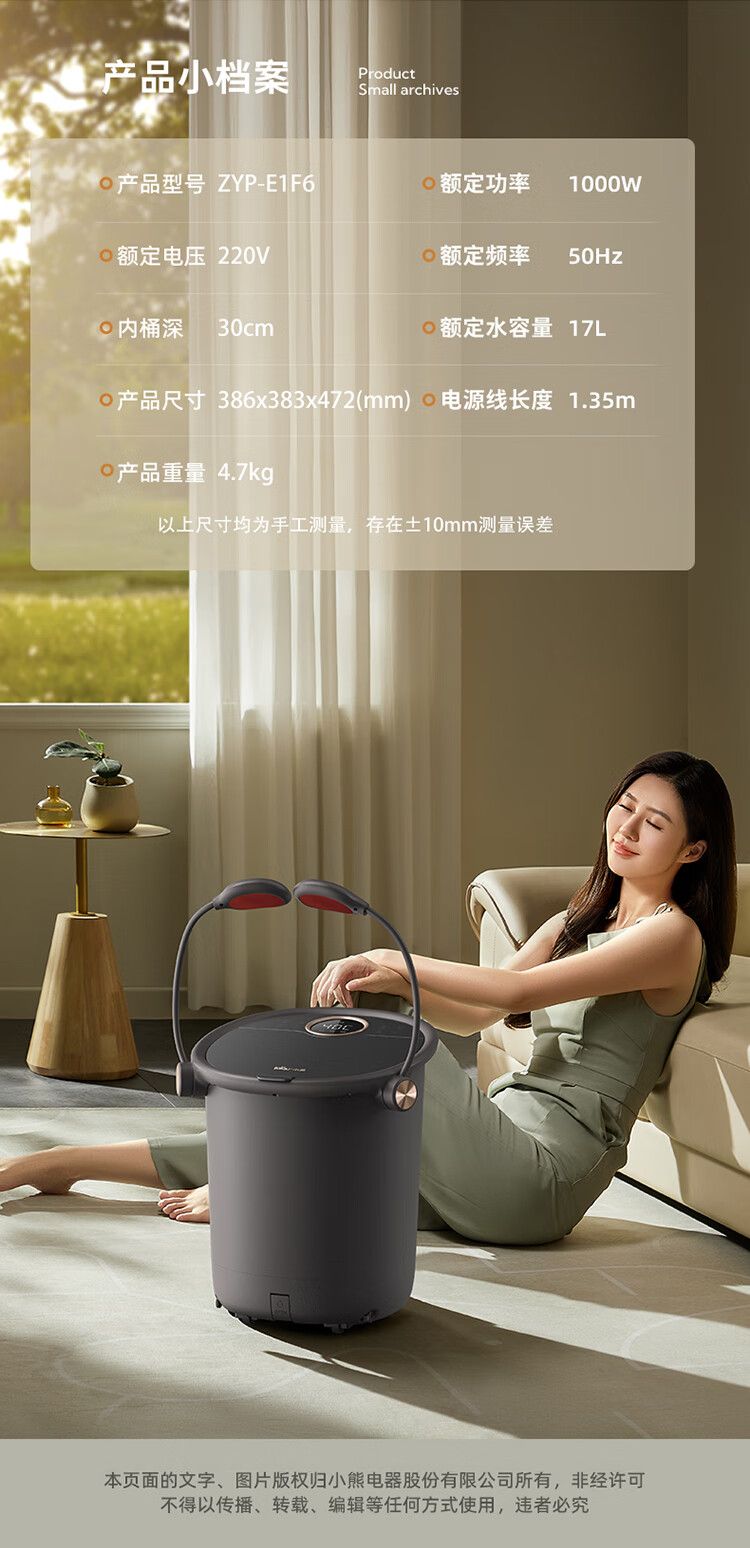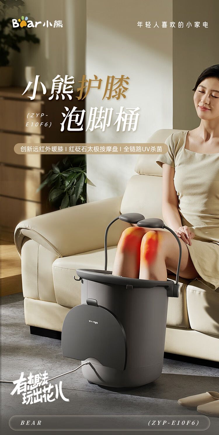 小熊泡脚桶ZYP-E10F6 全自动按摩恒温加热足浴盆 17L过膝护膝泡脚桶 智能泡脚盆