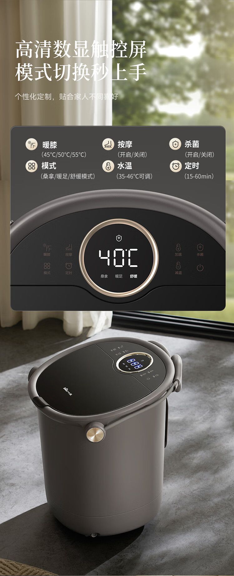 商品名称:小熊泡脚桶ZYP-E10F6 全自动按摩恒温加热足浴盆 17L过膝护膝泡脚桶 智能泡脚盆