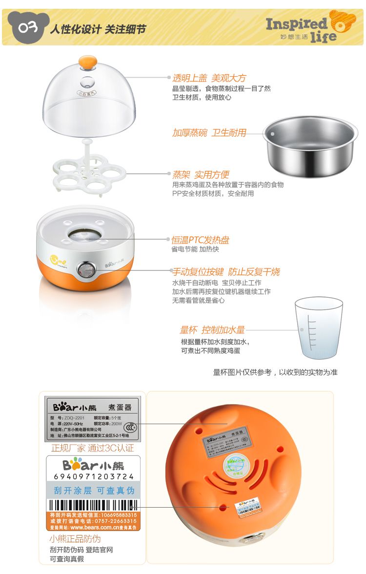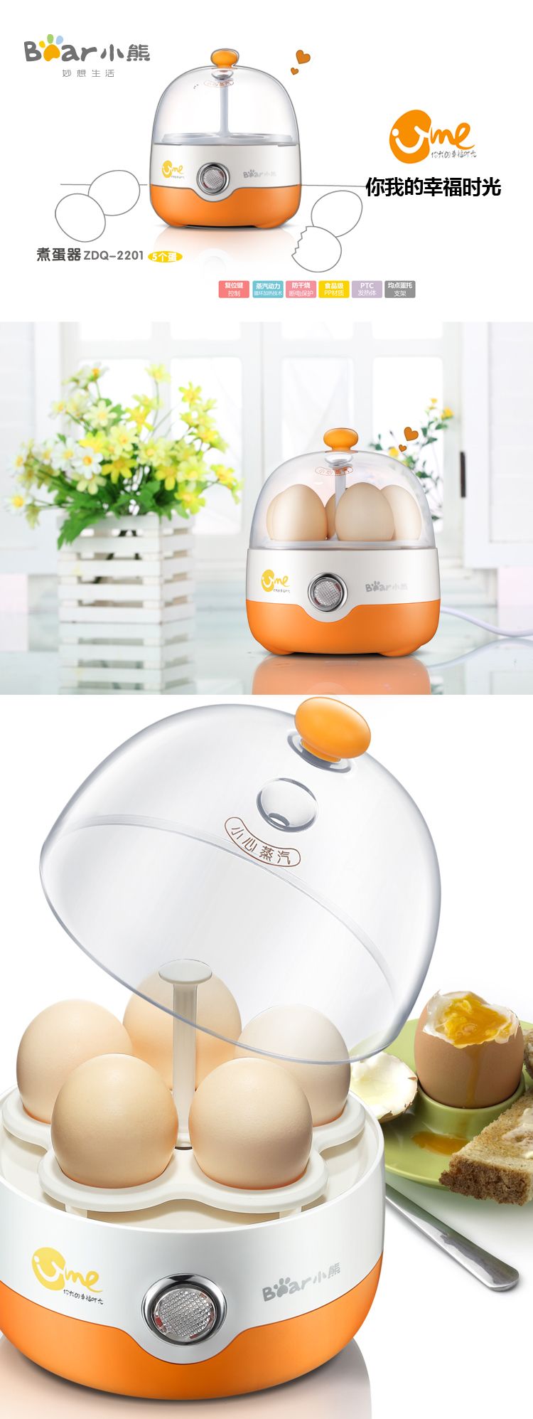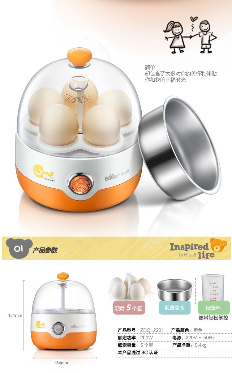 商品名称:小熊(Bear) 煮蛋器ZDQ-2201(橙色) 迷你全不锈钢煮蛋机蒸蛋器自动断电蒸鸡蛋