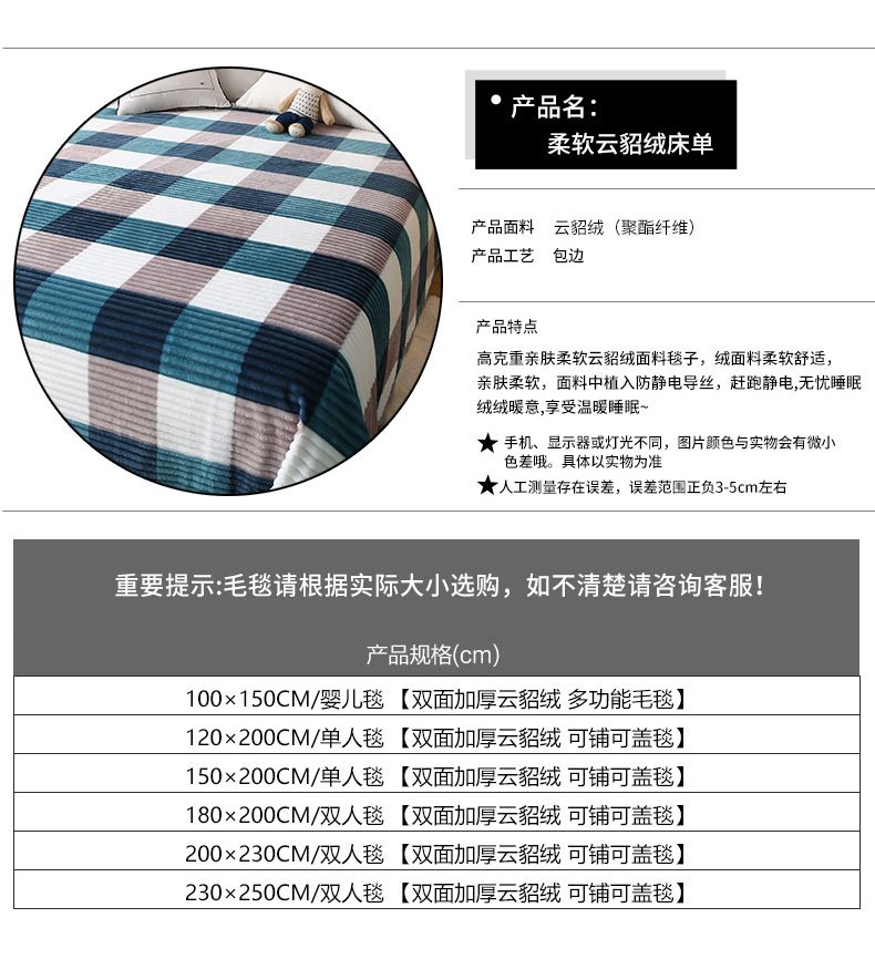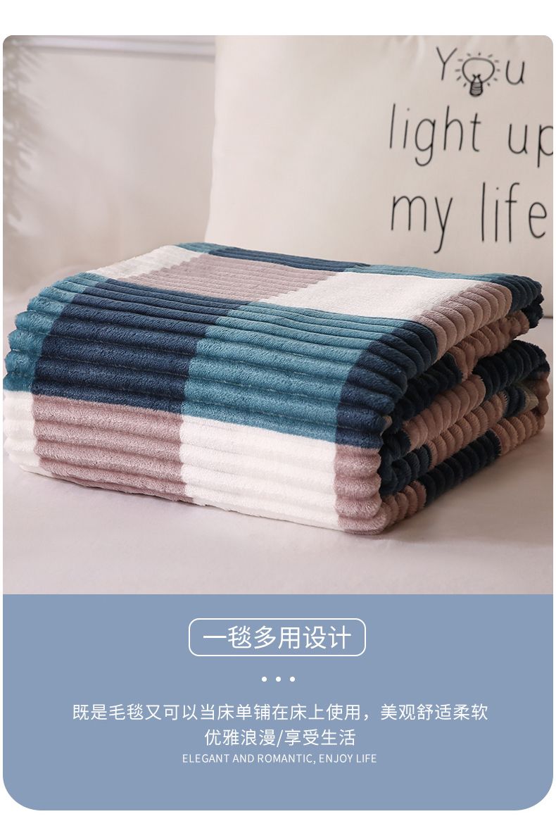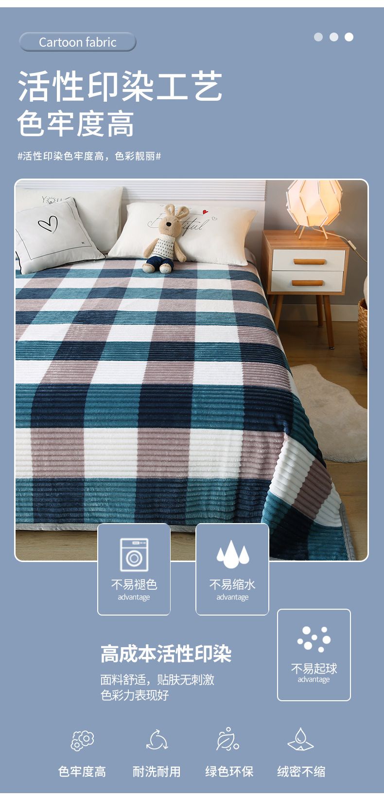 商品名称:舒正 抽条印花毛毯-浅绿 SZMT-0007
