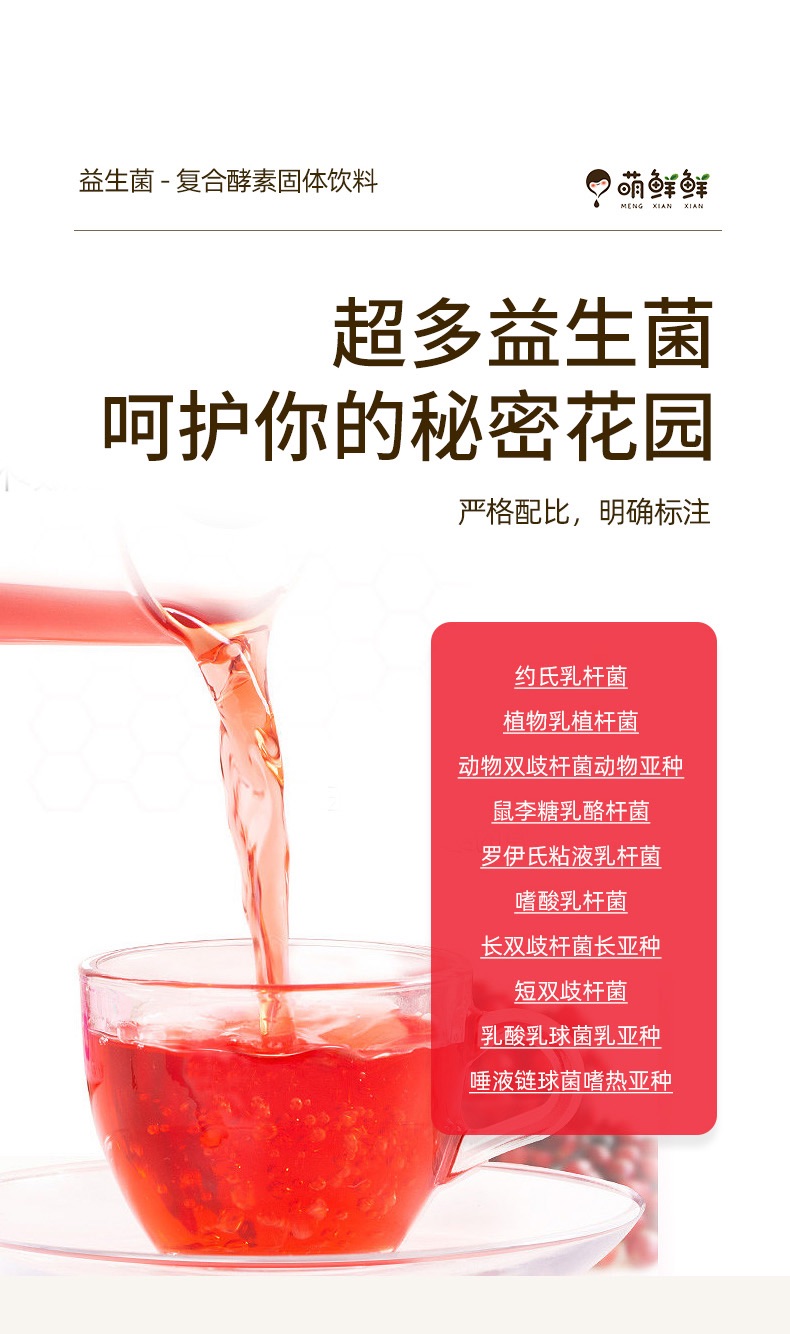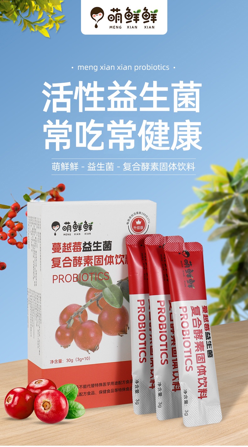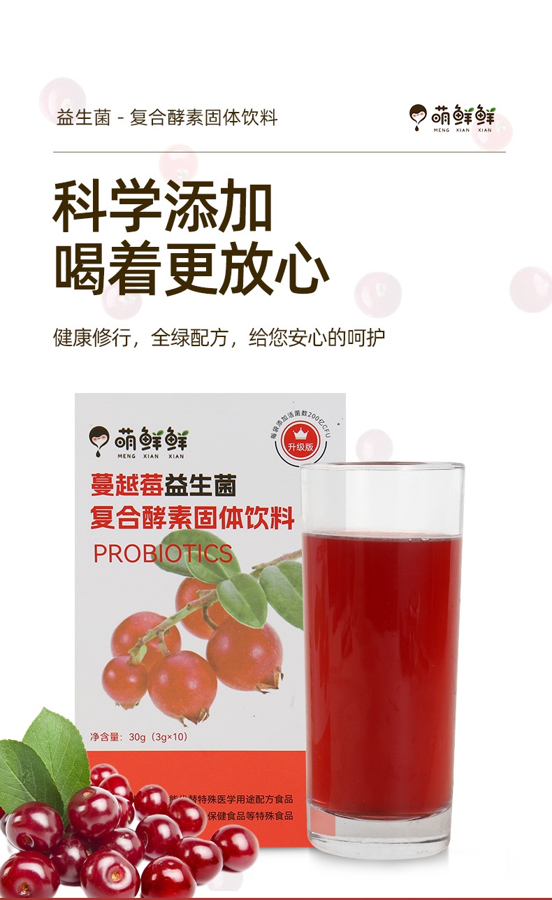 商品名称:萌鲜鲜蔓越莓益生菌固体饮料3g*10袋/盒*2盒