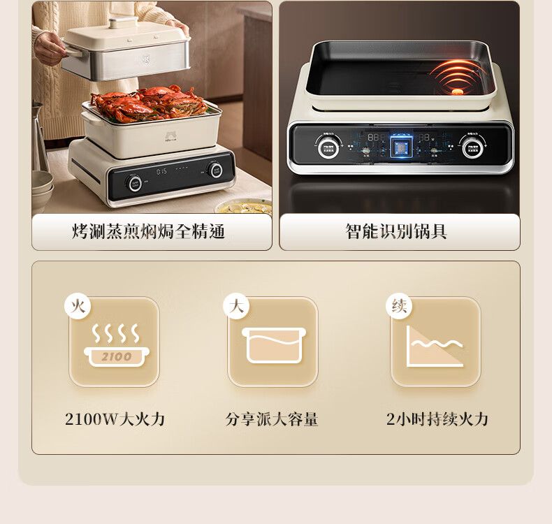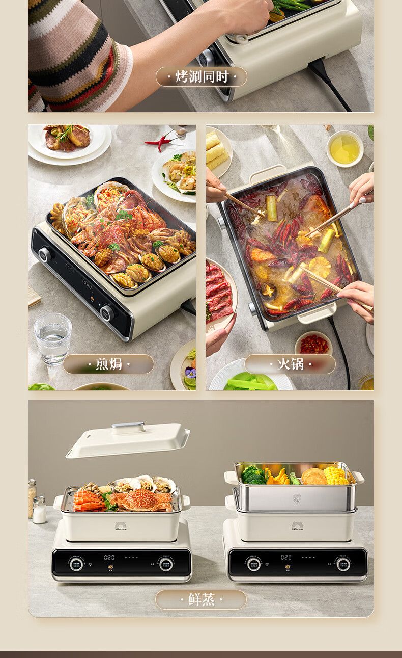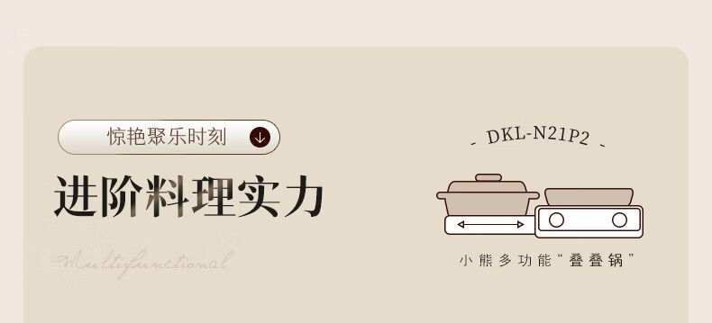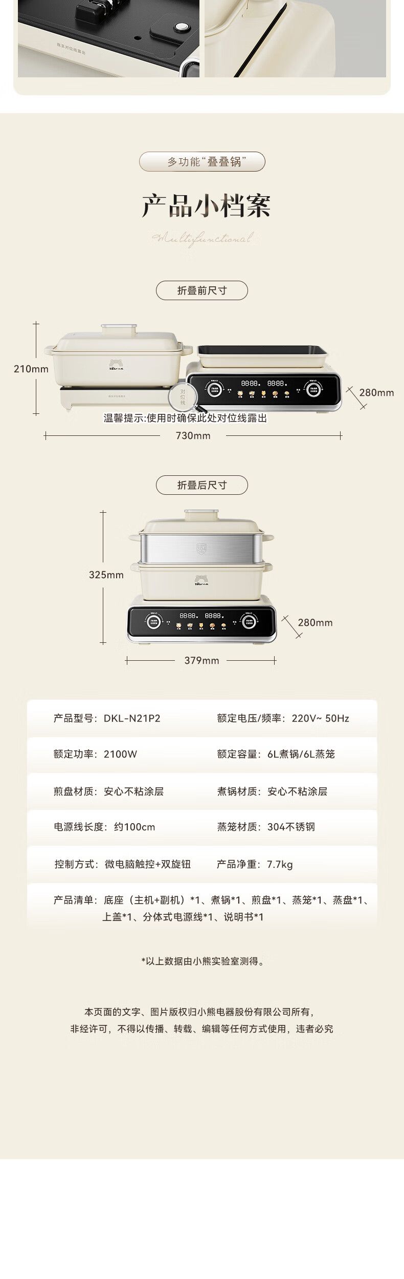 商品名称:小熊叠叠锅DKL-N21P2 折叠多功能锅 电蒸锅电火锅 6L多用途烤涮一体家用料理锅烤肉锅电烤盘