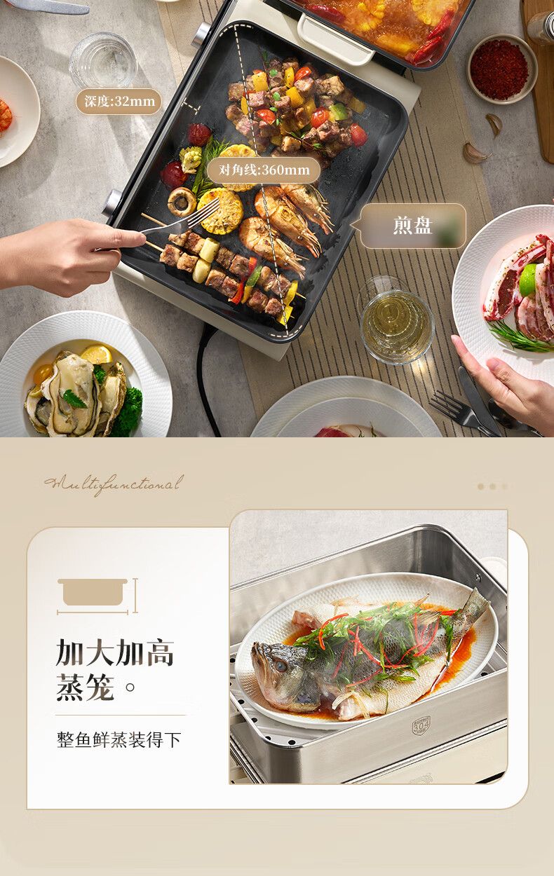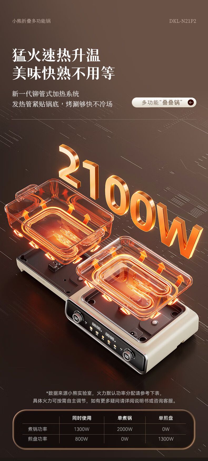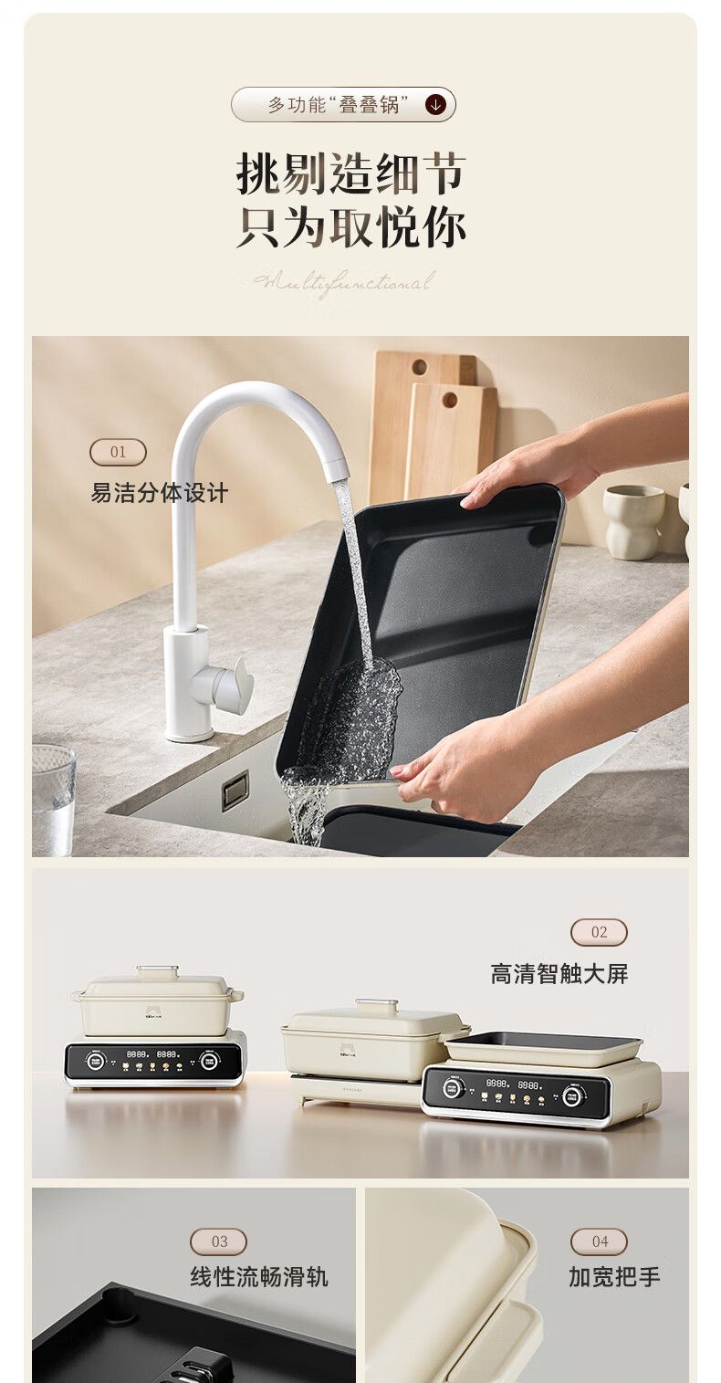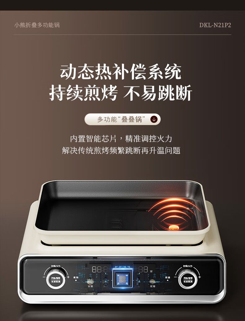 小熊叠叠锅DKL-N21P2 折叠多功能锅 电蒸锅电火锅 6L多用途烤涮一体家用料理锅烤肉锅电烤盘