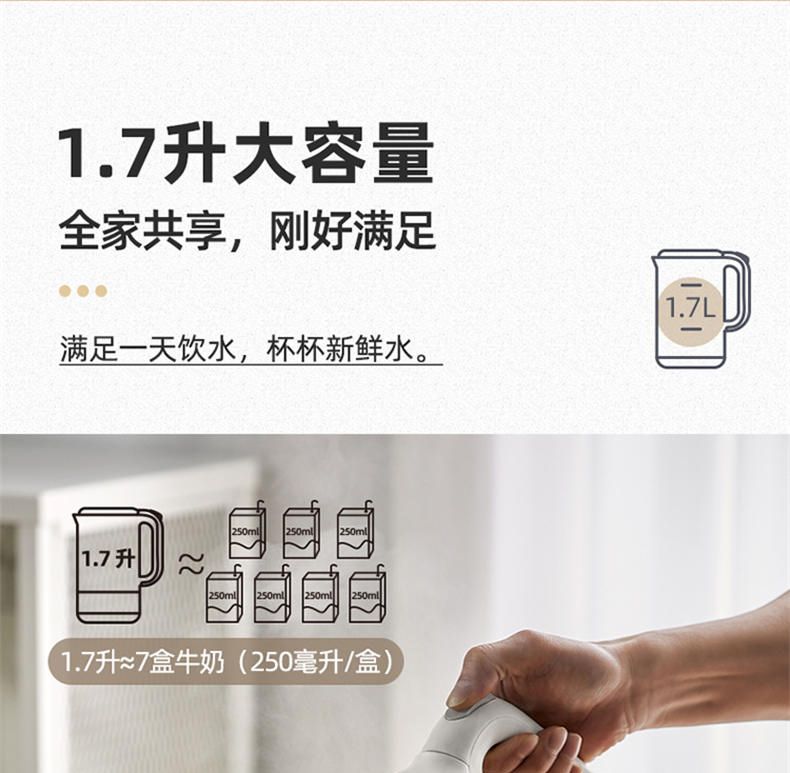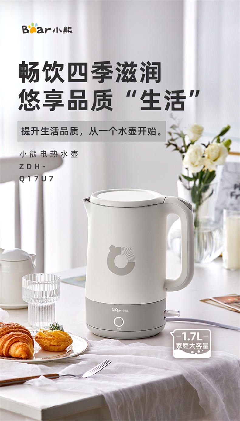 小熊烧水壶ZDH-Q17U7 电水壶保温热水壶电热水壶开水壶1.7L大容量养生壶