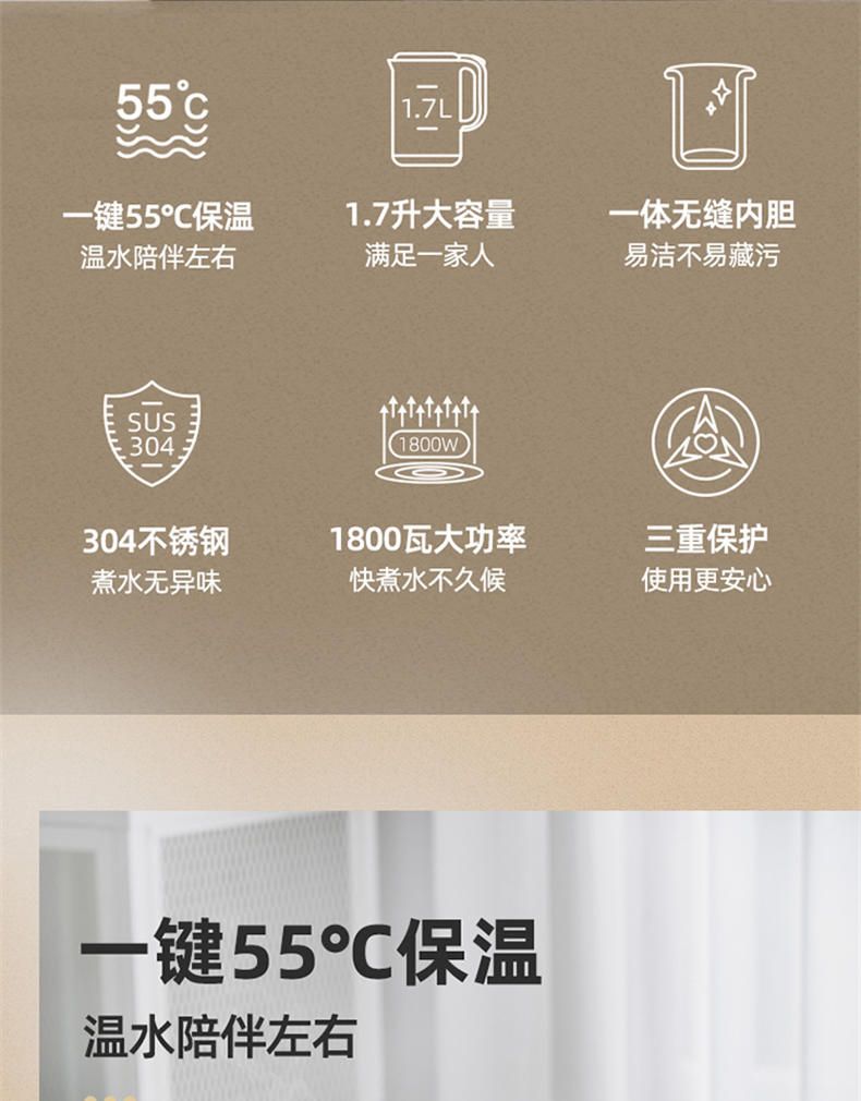 商品名称:小熊烧水壶ZDH-Q17U7 电水壶保温热水壶电热水壶开水壶1.7L大容量养生壶