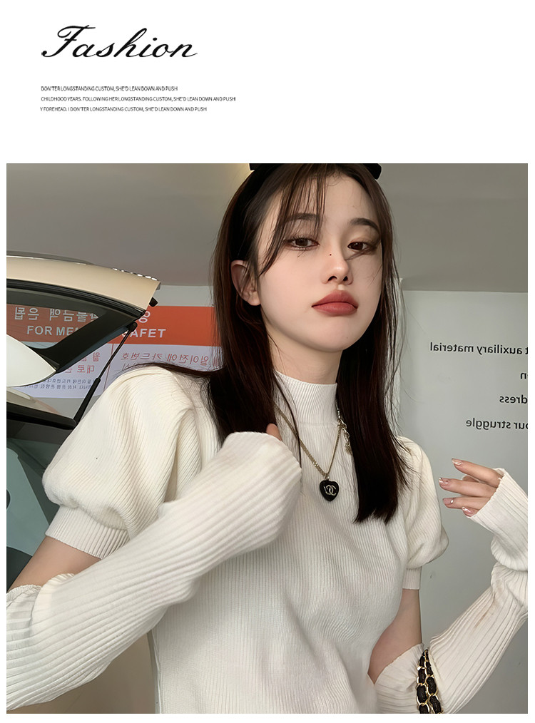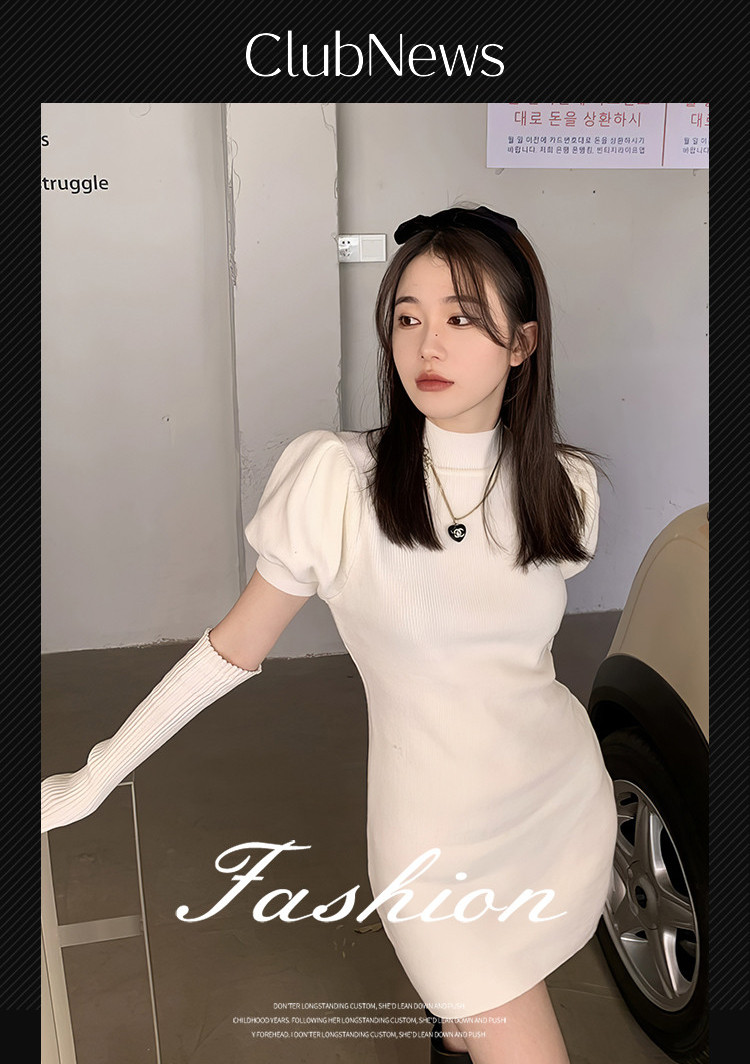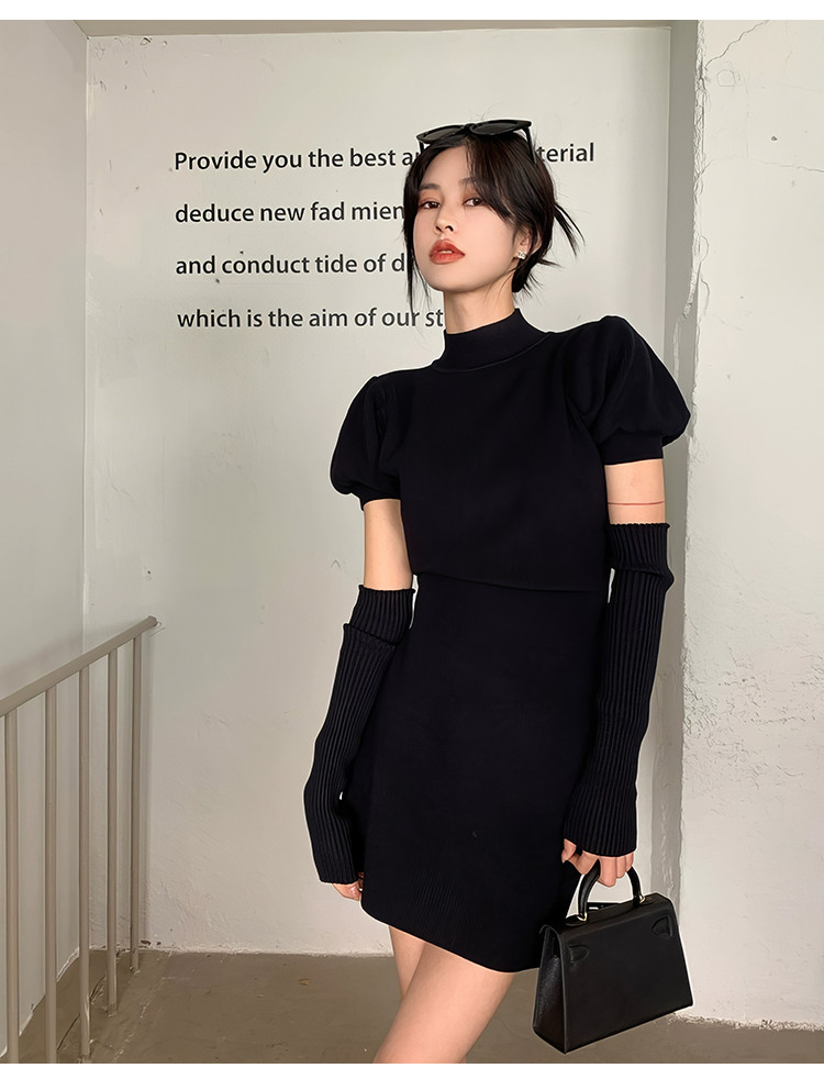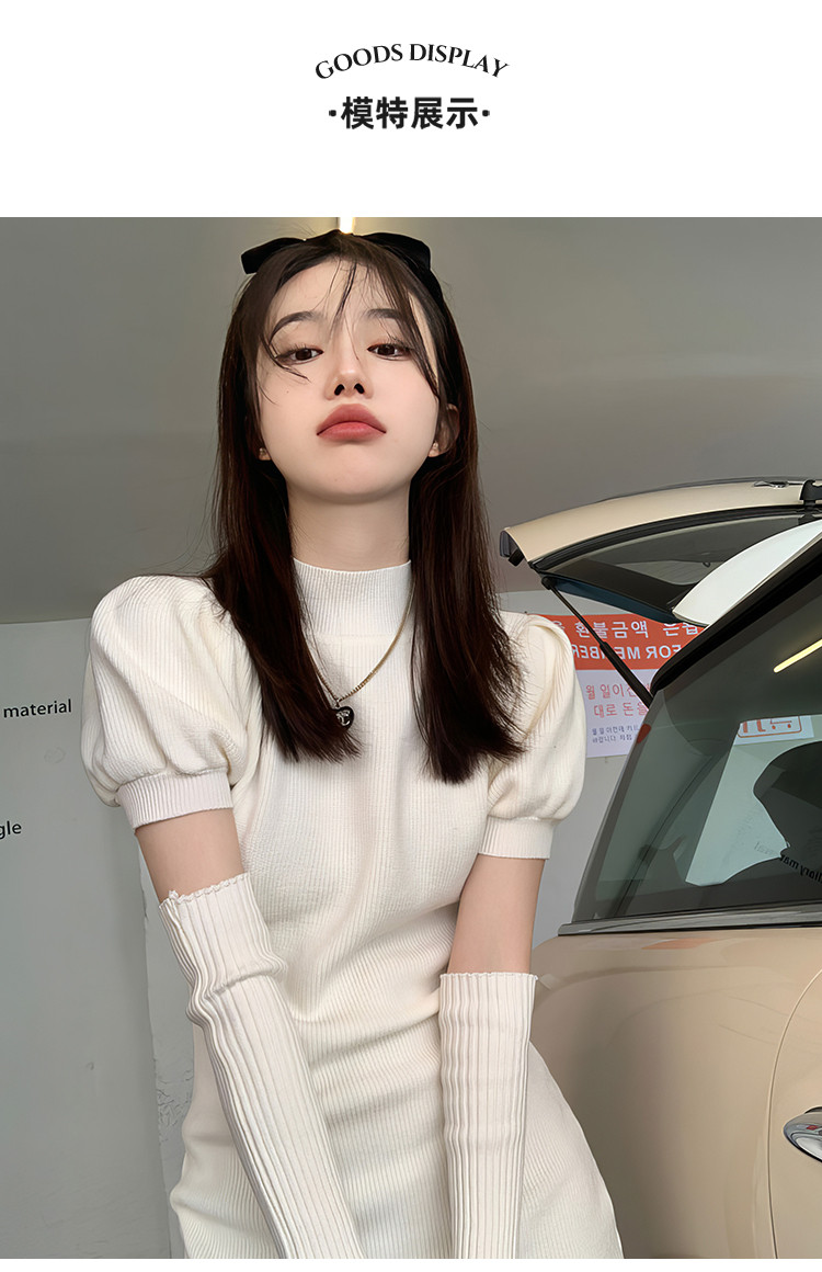 纯欲风针织连衣裙女泡泡袖打底内搭包臀裙 714499