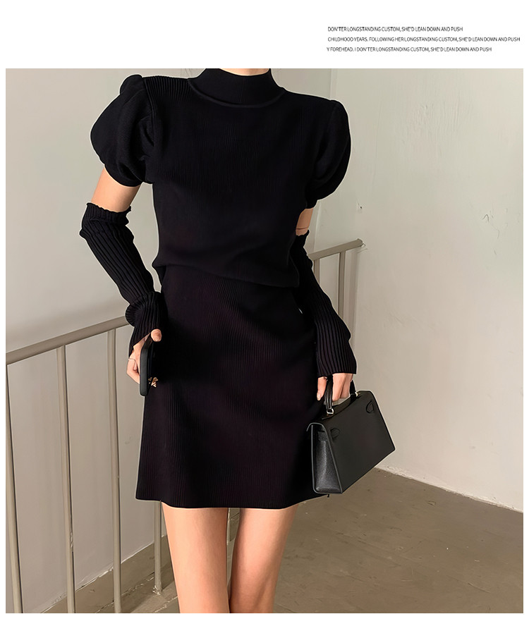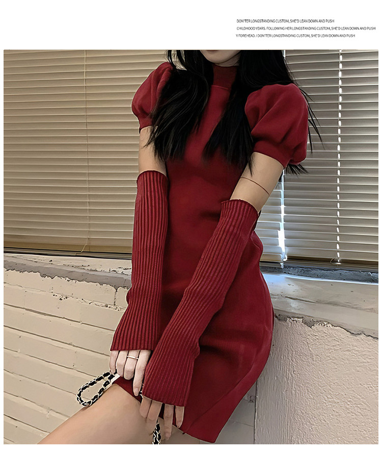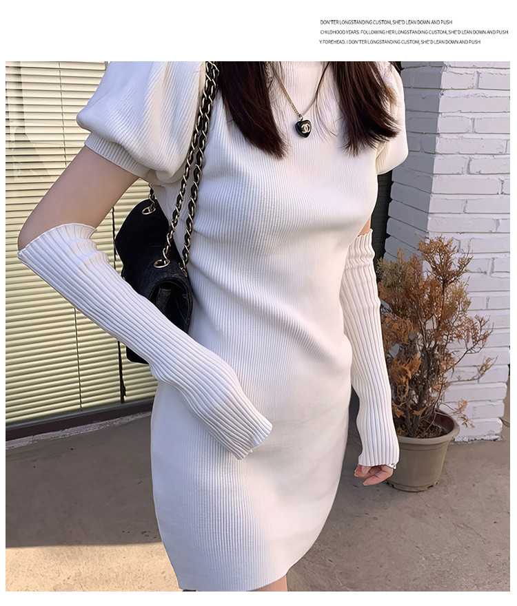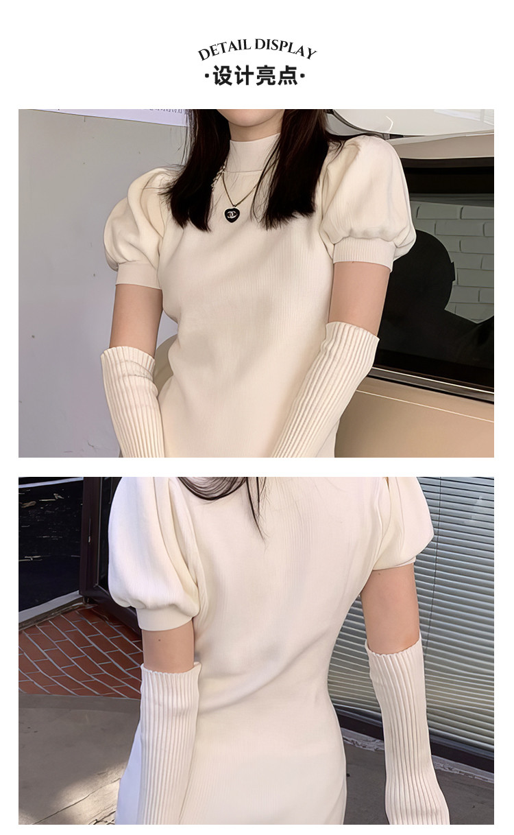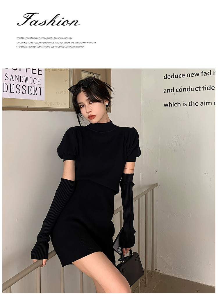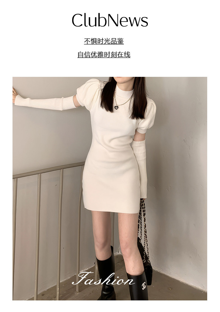 商品名称:纯欲风针织连衣裙女泡泡袖打底内搭包臀裙 714499
