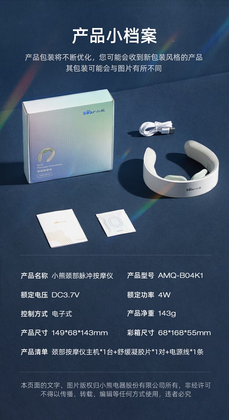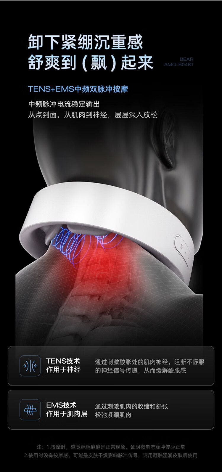 商品名称:小熊(Bear)颈椎按摩器AMQ-B04K1 颈部肩部颈椎按摩仪 颈肩按摩双频脉冲热敷护颈仪