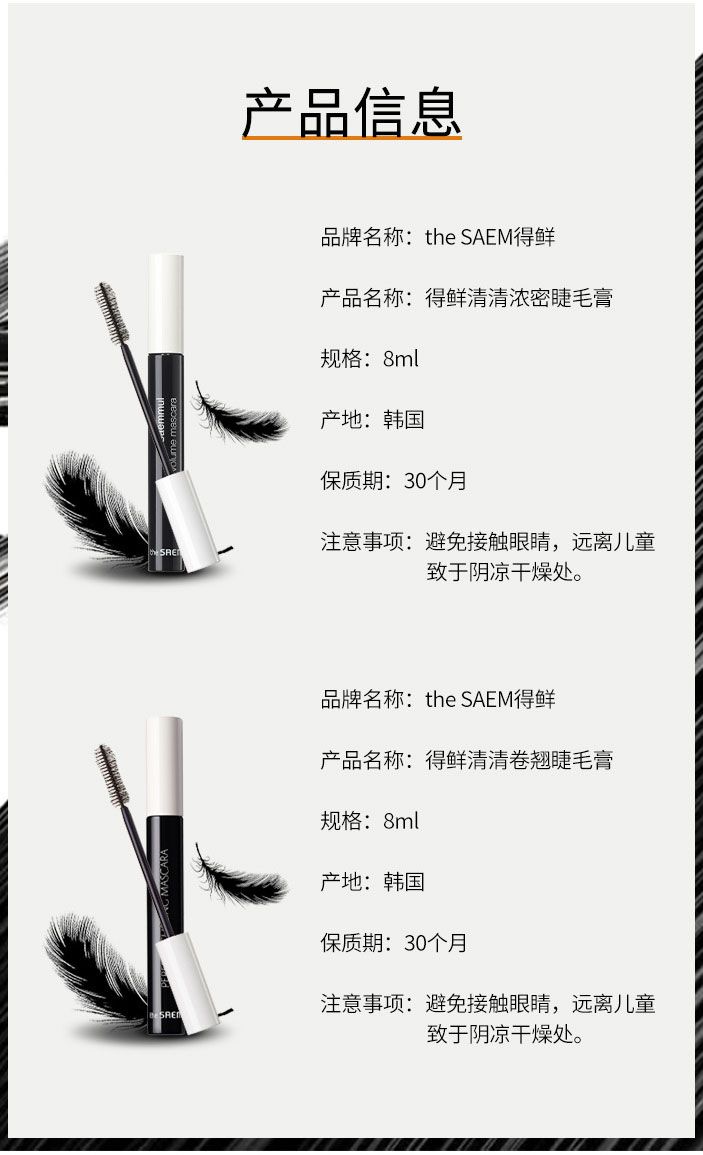 商品名称:The Saem/得鲜清卷翘睫毛膏 8ml