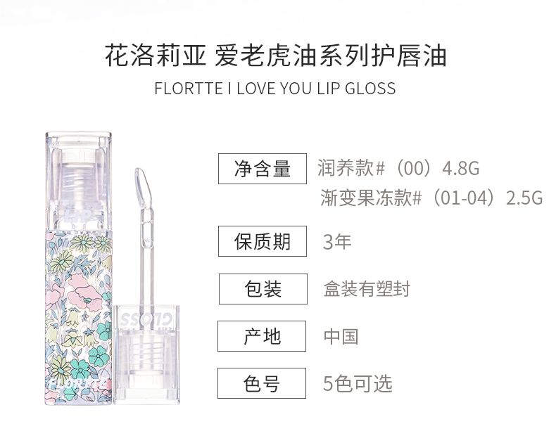 商品名称:Flortte/花洛莉亚“爱老虎油”渐变果冻护唇油 2.5g