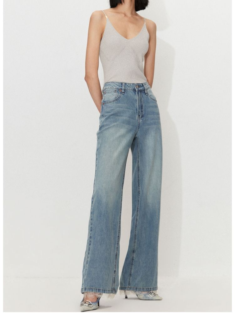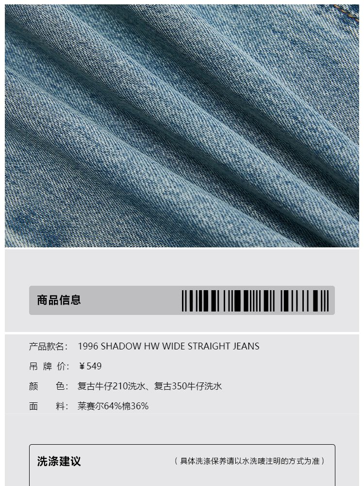 商品名称:【复古潮流】夏季含莱赛尔复古潮流高腰宽松直筒裤牛仔裤女 927706