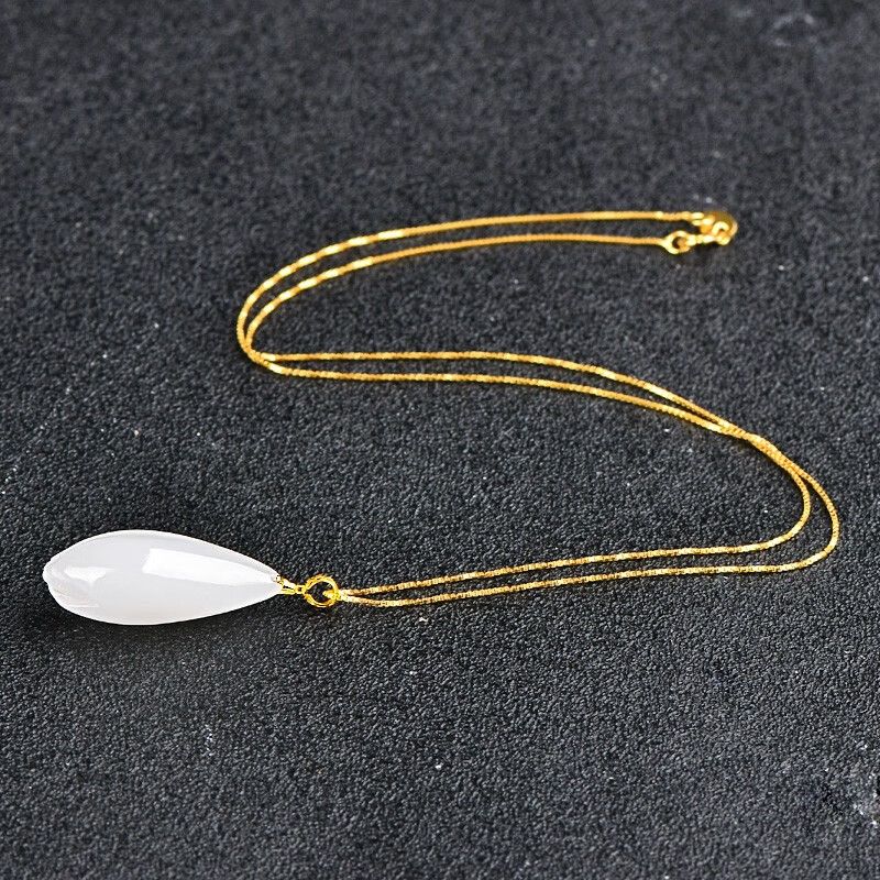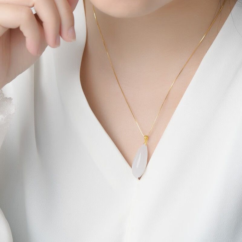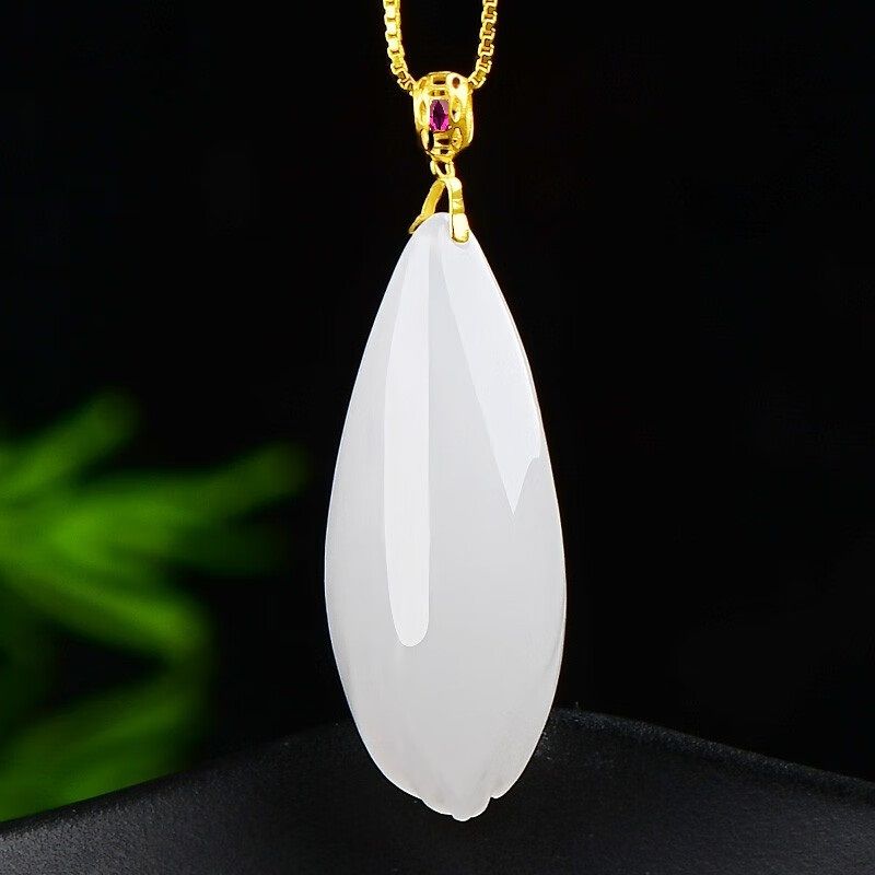 商品名称:馬传玉 18K金镶和田玉兰花吊坠送银链 MCY017
