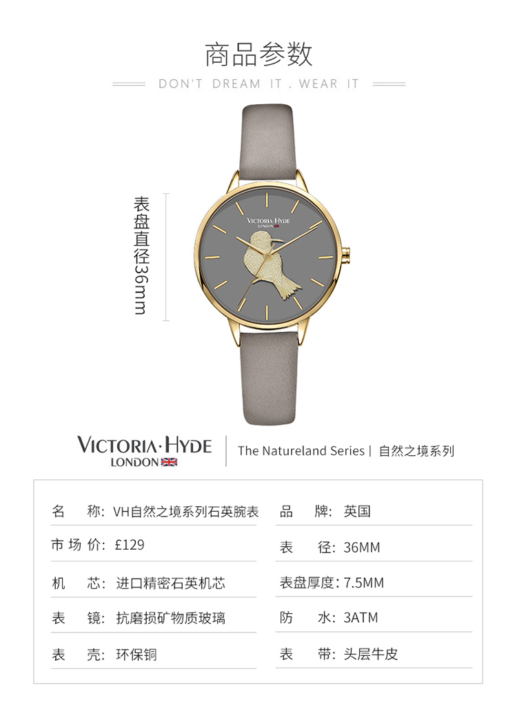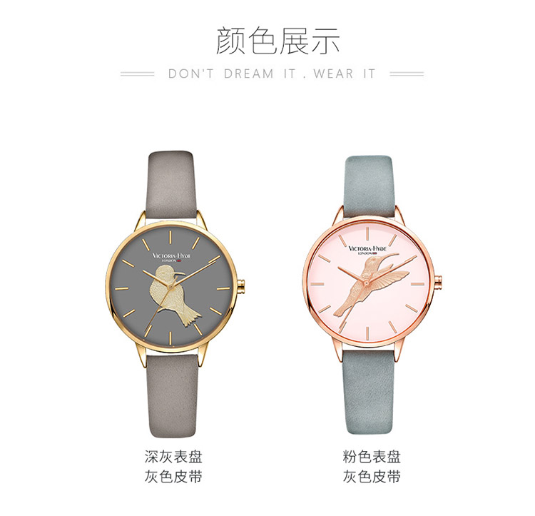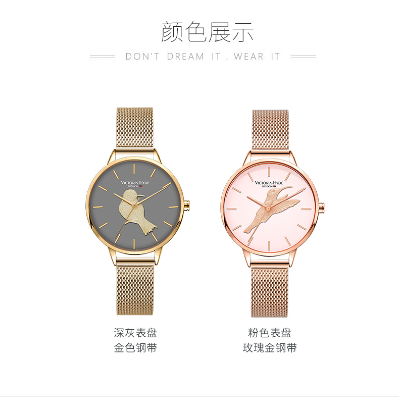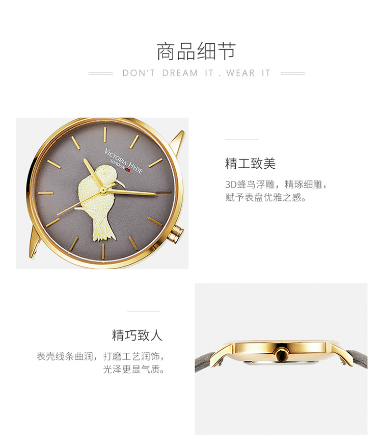商品名称:Victoria.Hyde/维多利亚海德 自然系列蜂鸟浮雕石英女表时尚女士防水腕表36mm(送蜂鸟手链)