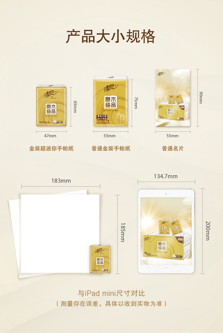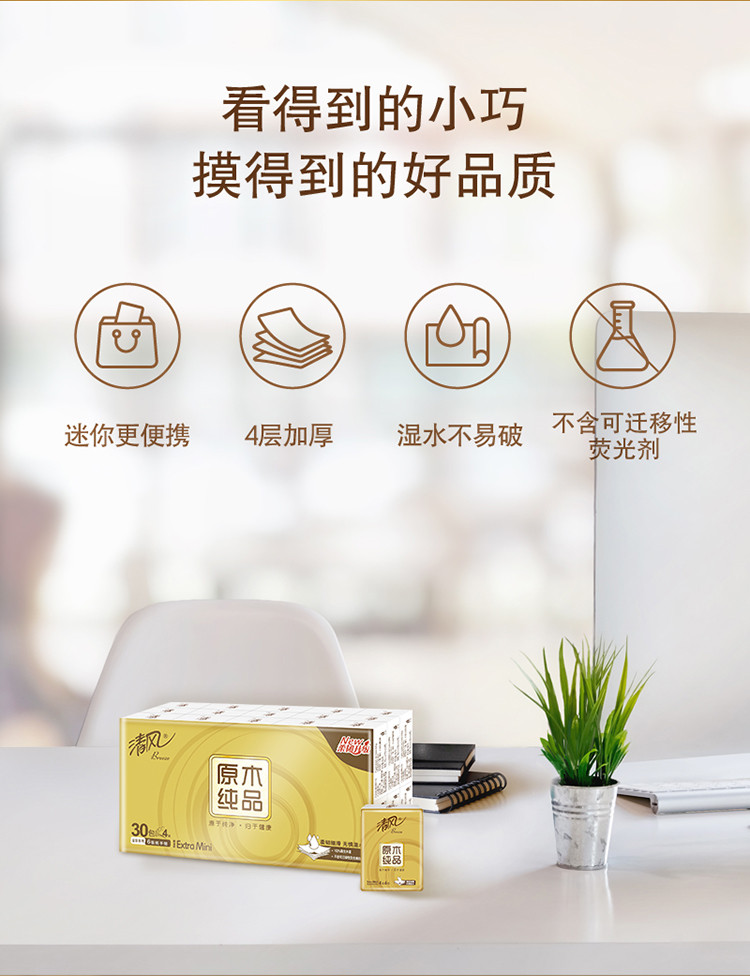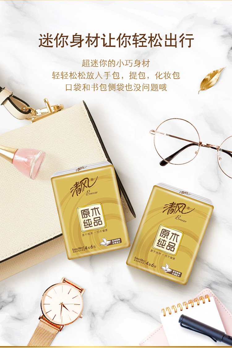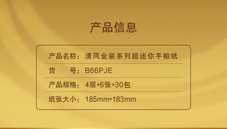 商品名称:清风 原木金装手帕纸4层6张/包(30包/条)