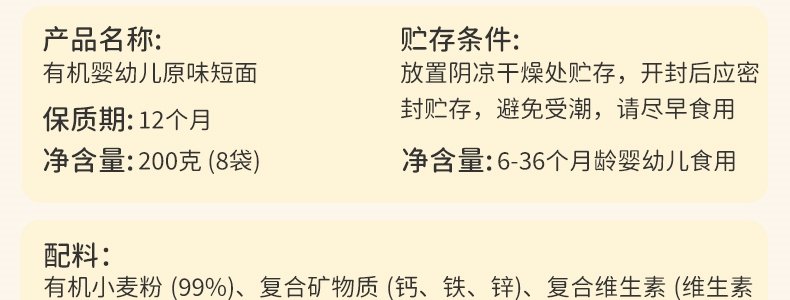商品名称:法国 爷爷的农场(GRANDPA'S FARM)有机婴幼儿原味短面 200g