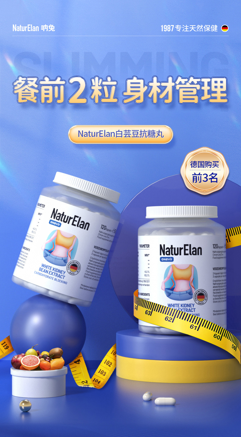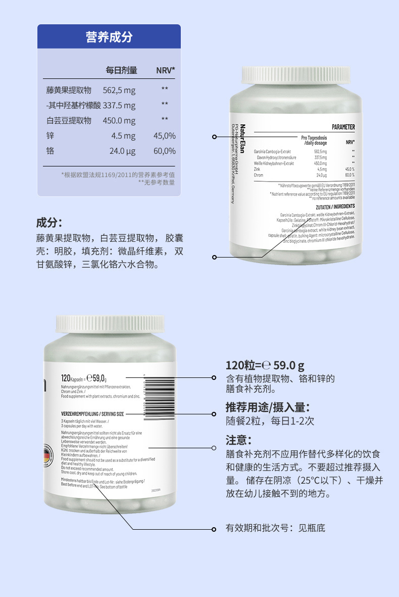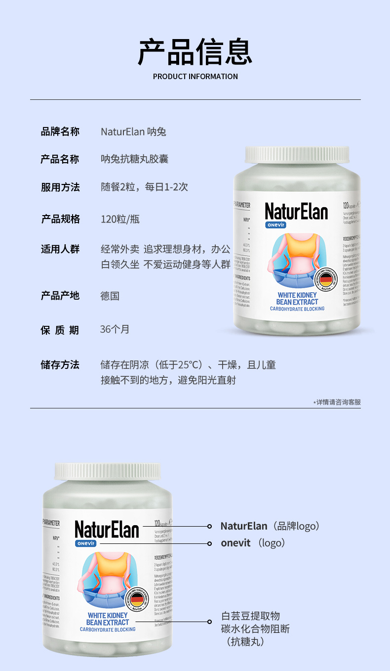 商品名称:【买1送1】德国进口 NaturElan呐兔 藤黄果白芸豆提取物 抗糖丸 120粒