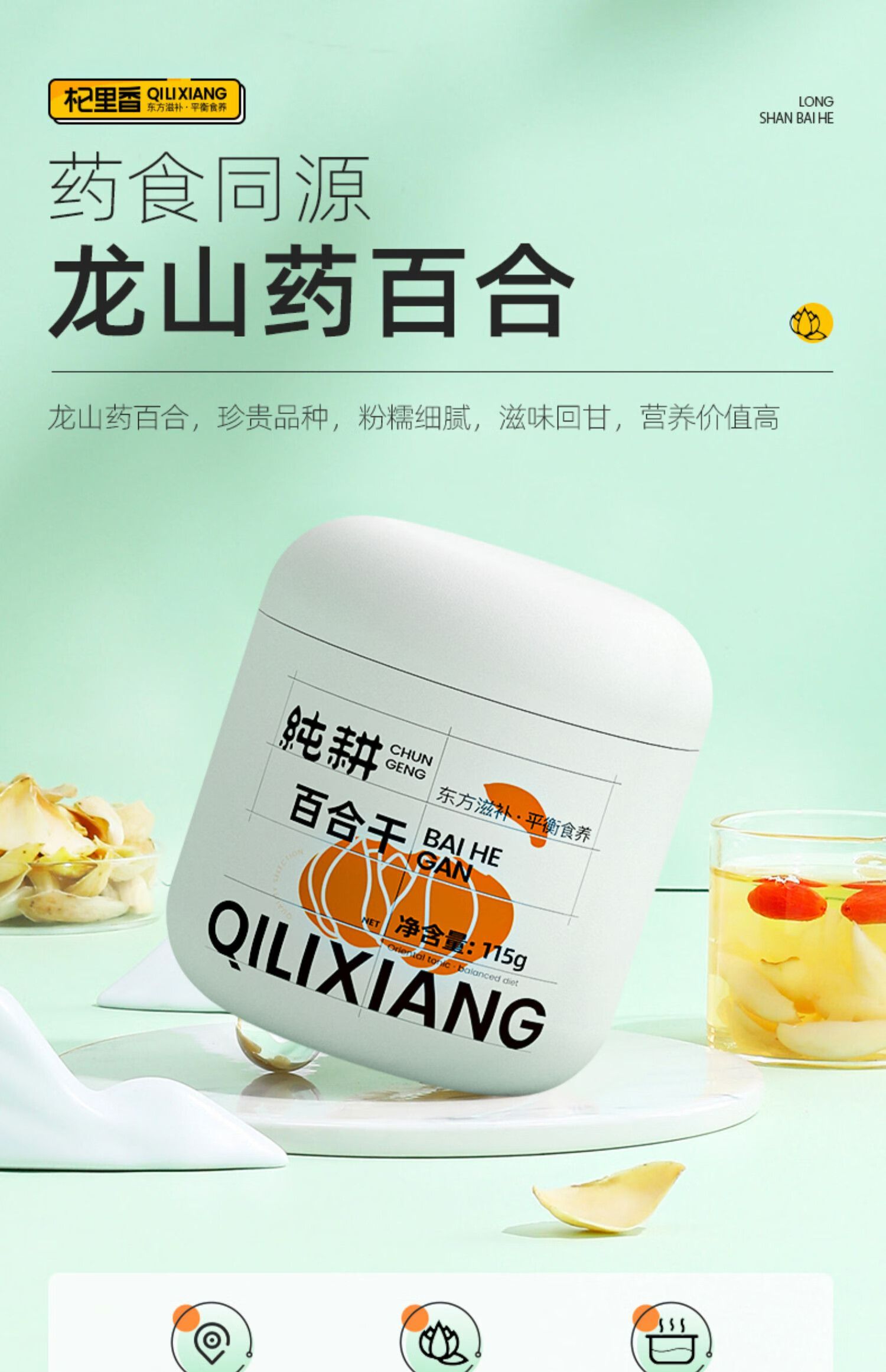商品名称:杞里香 白色圆罐百合干115g014301