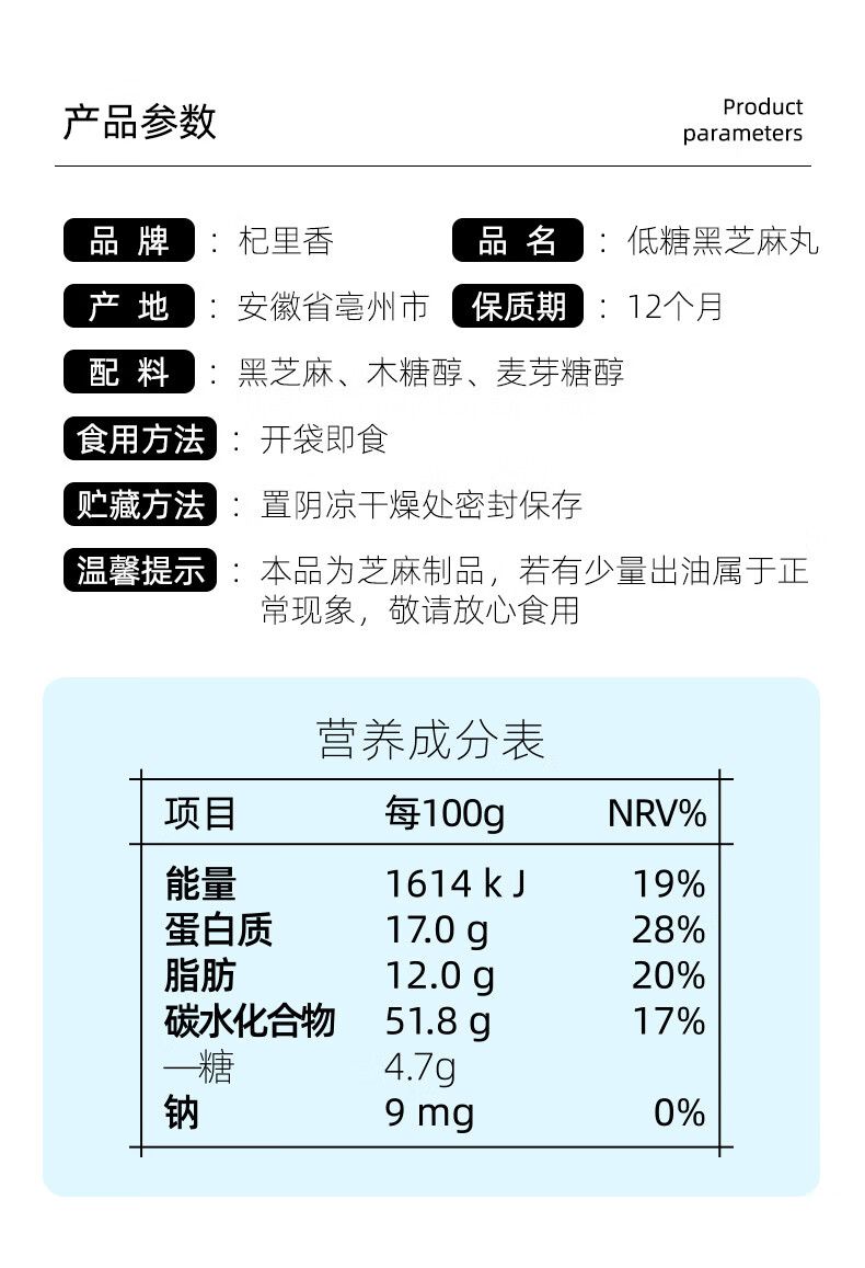 商品名称:杞里香 袋装低糖黑芝麻丸450g018226