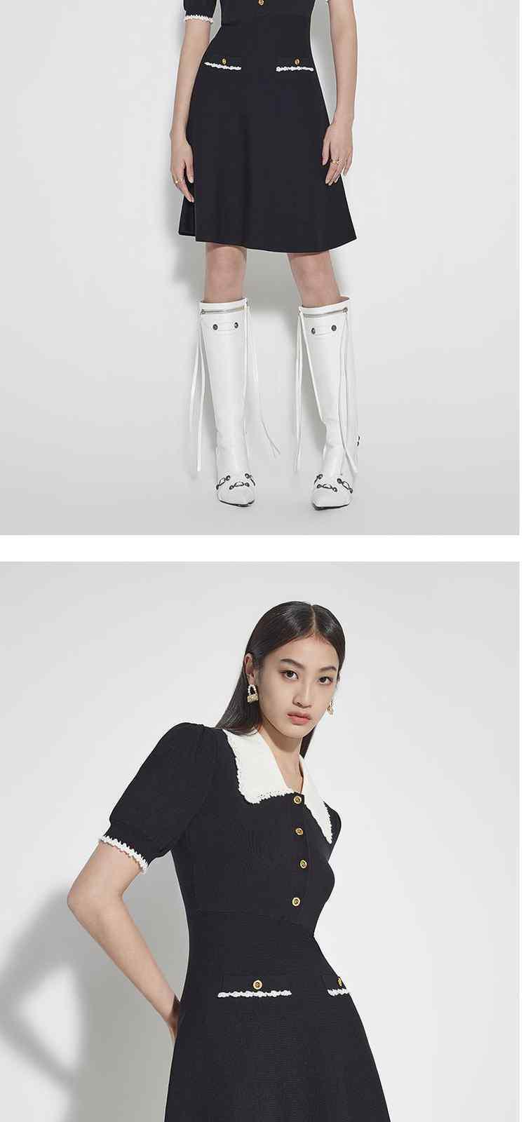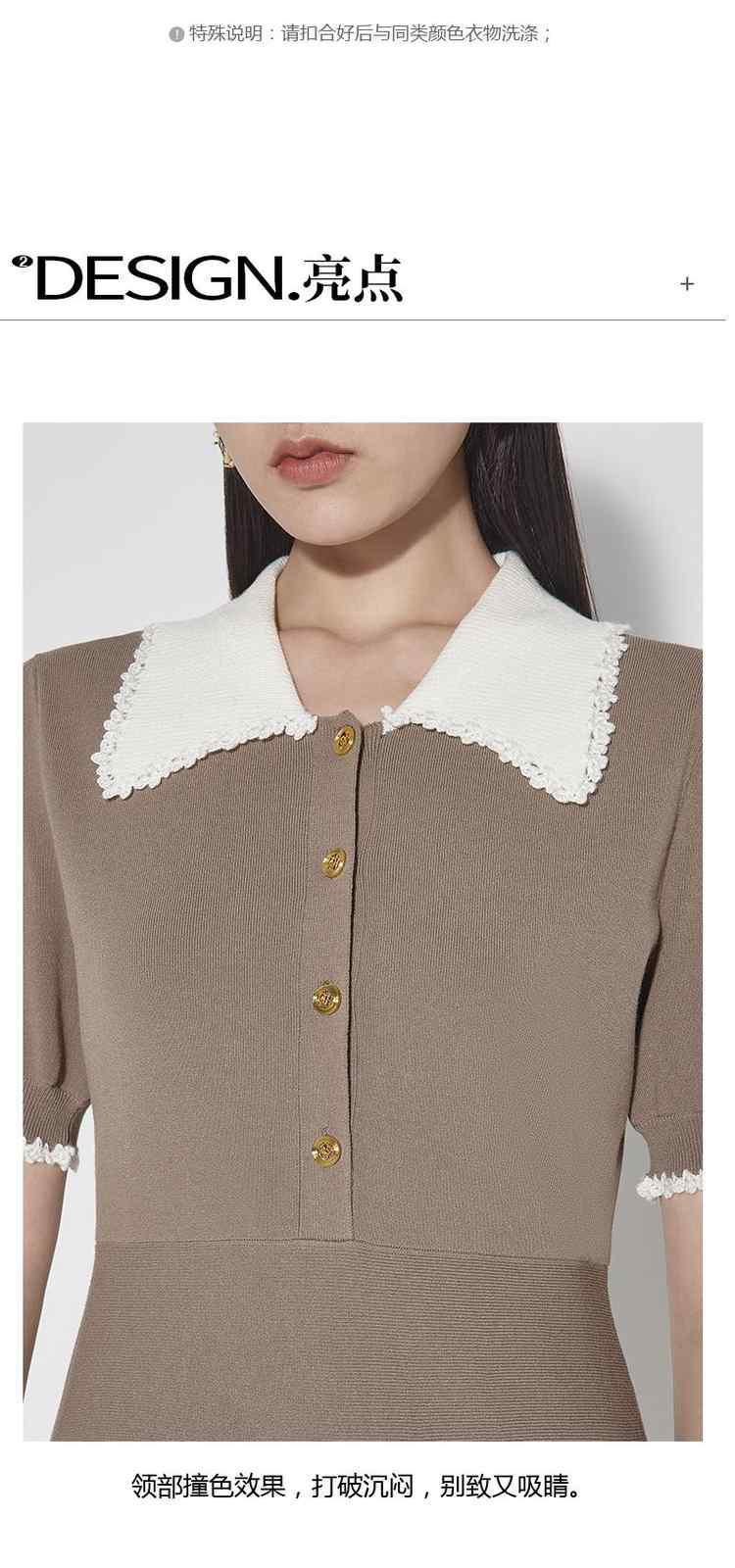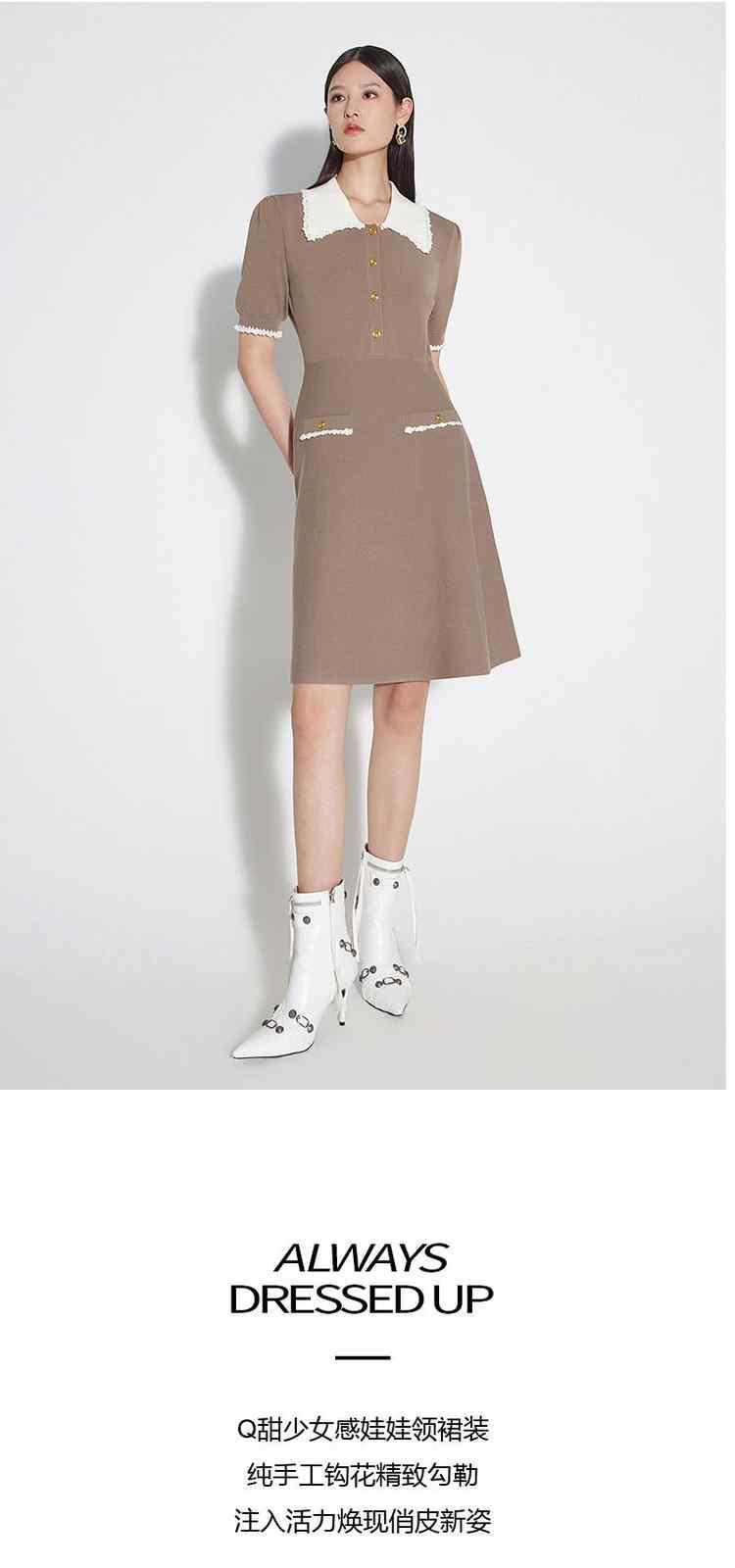 商品名称:春装 小香风手工钩花娃娃领Polo针织连衣裙 884623