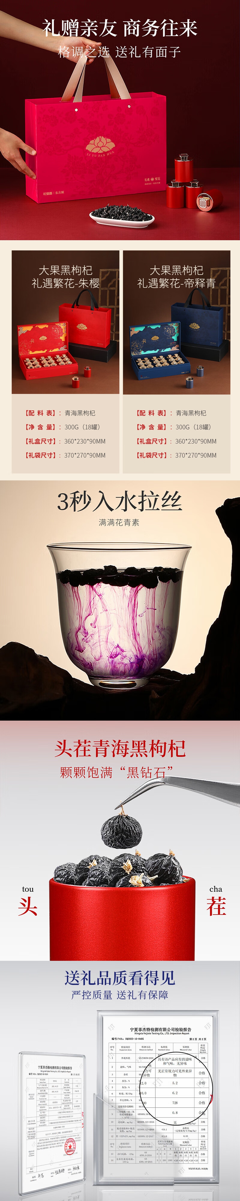 商品名称:杞里香 大果黑枸杞-礼遇繁花红色礼盒300g(18罐)011068