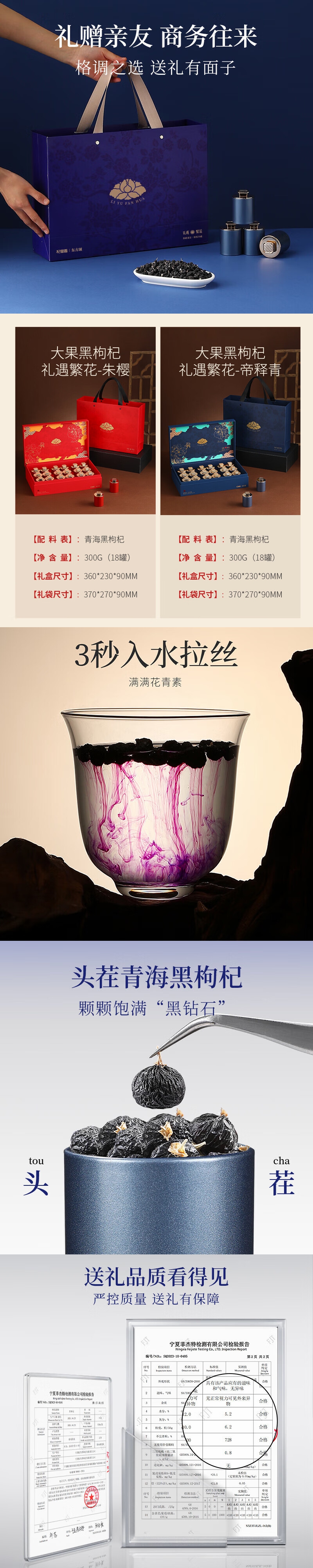 商品名称:杞里香 大果黑枸杞-礼遇繁花蓝色礼盒300g(18罐)011069