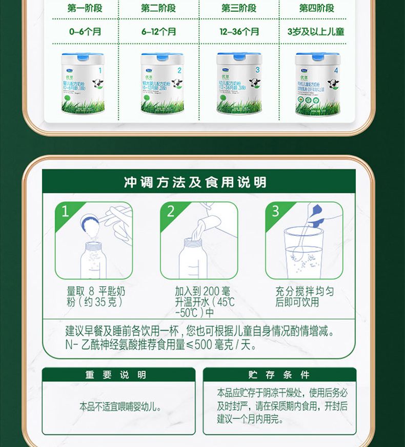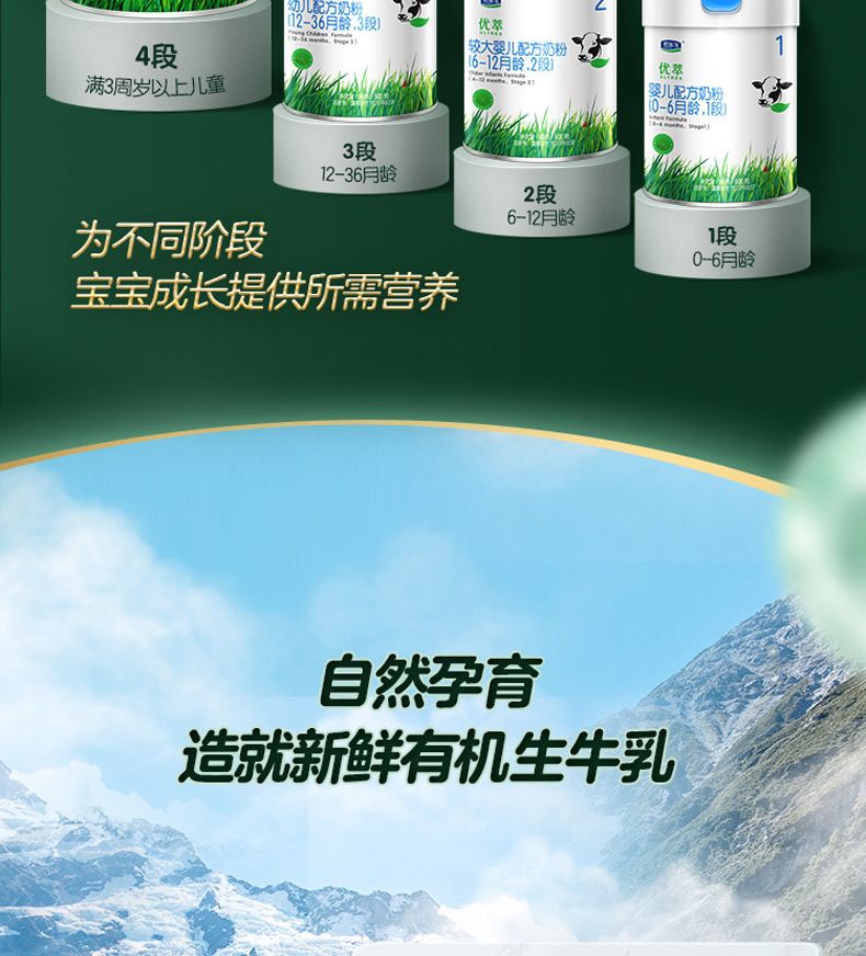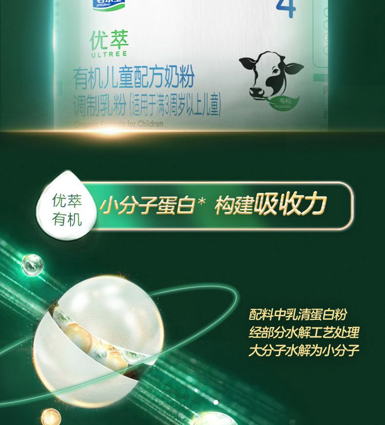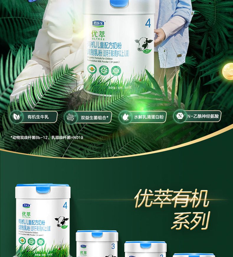 商品名称:【送悦鲜活10瓶】君乐宝 优萃有机4段 儿童学生成长3岁以上配方牛奶粉 800克*3罐