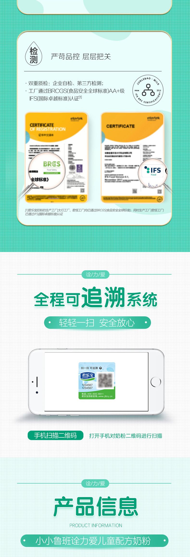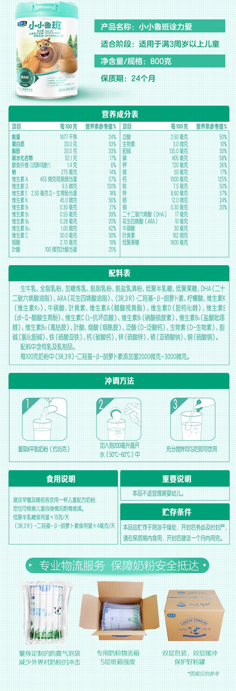 商品名称:君乐宝 诠力爱小小鲁班奶粉 4段 3岁以上 800g*2罐