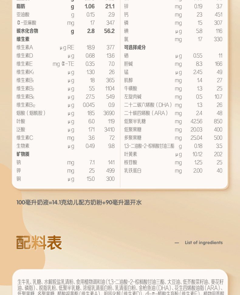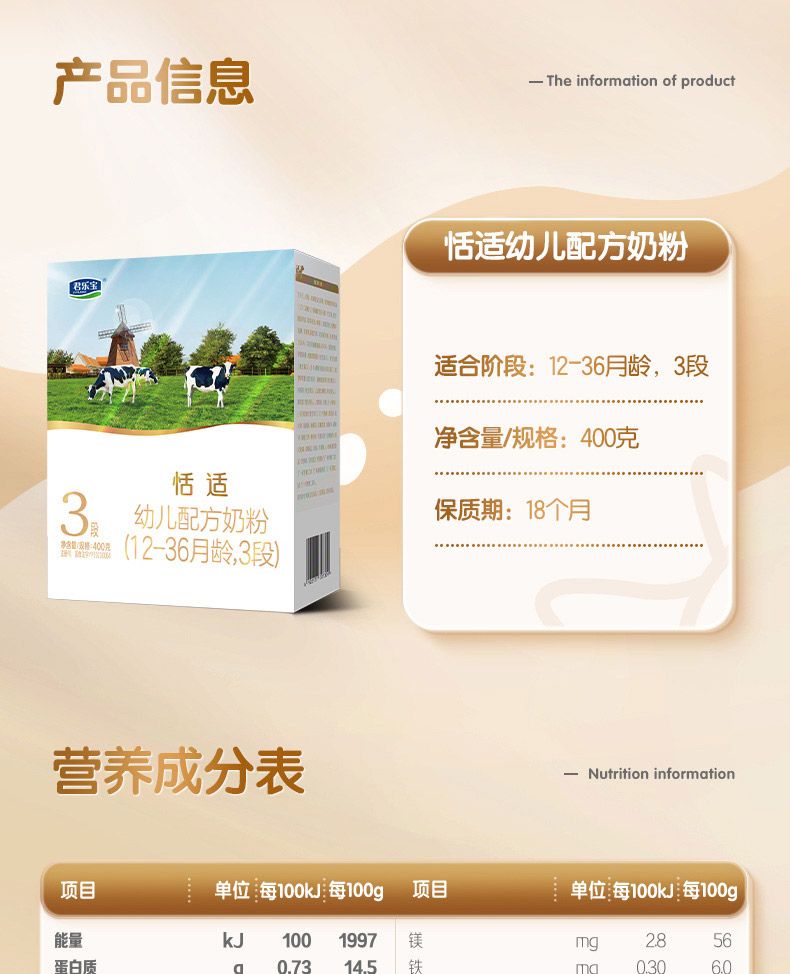商品名称:君乐宝 恬适婴幼儿配方奶粉3段 400克