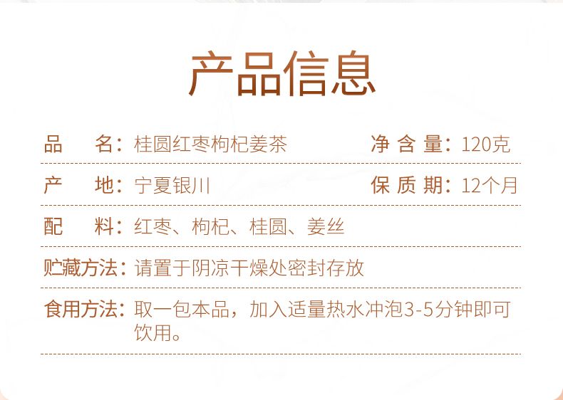 商品名称:杞里香 桂圆姜丝茶盒装120g012009