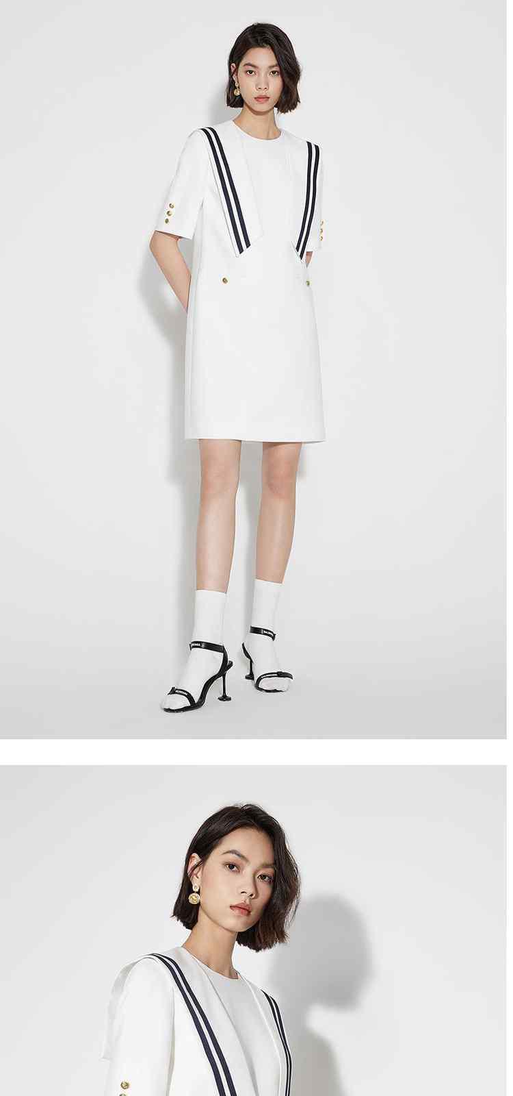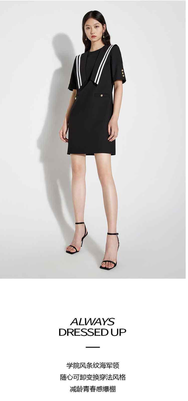 商品名称:春装 学院风可拆披肩海军领A字裙连衣裙女 302479