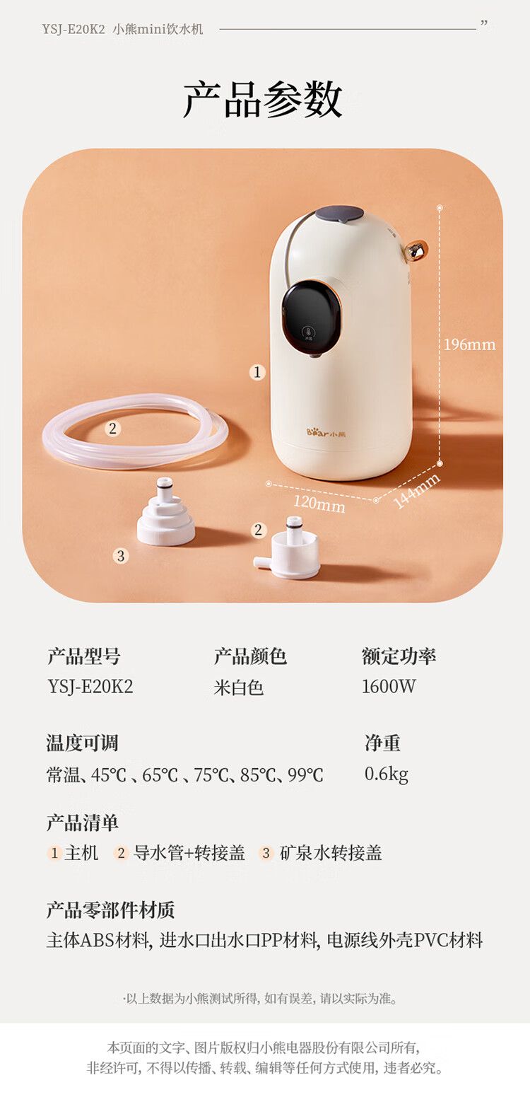 商品名称:小熊即热式饮水机YSJ-E20K2 便携式台式桌面旅行小型迷你桶装水抽水器