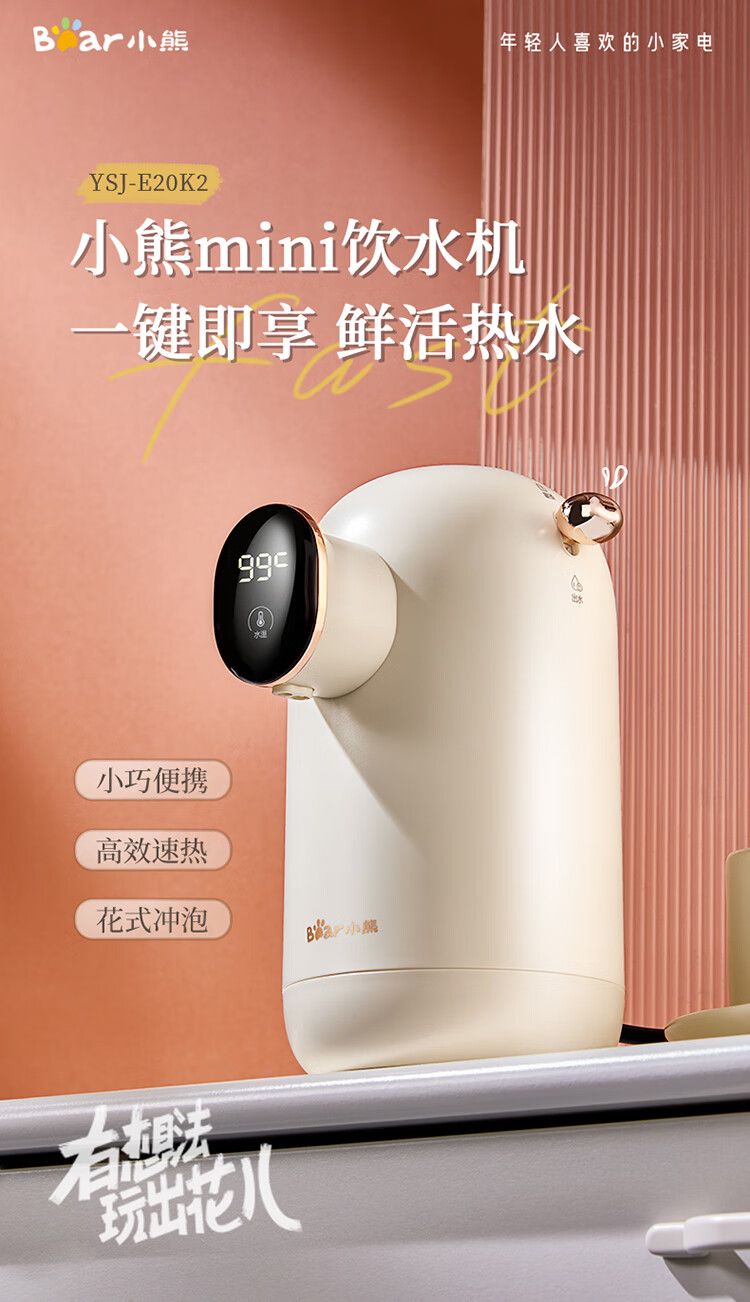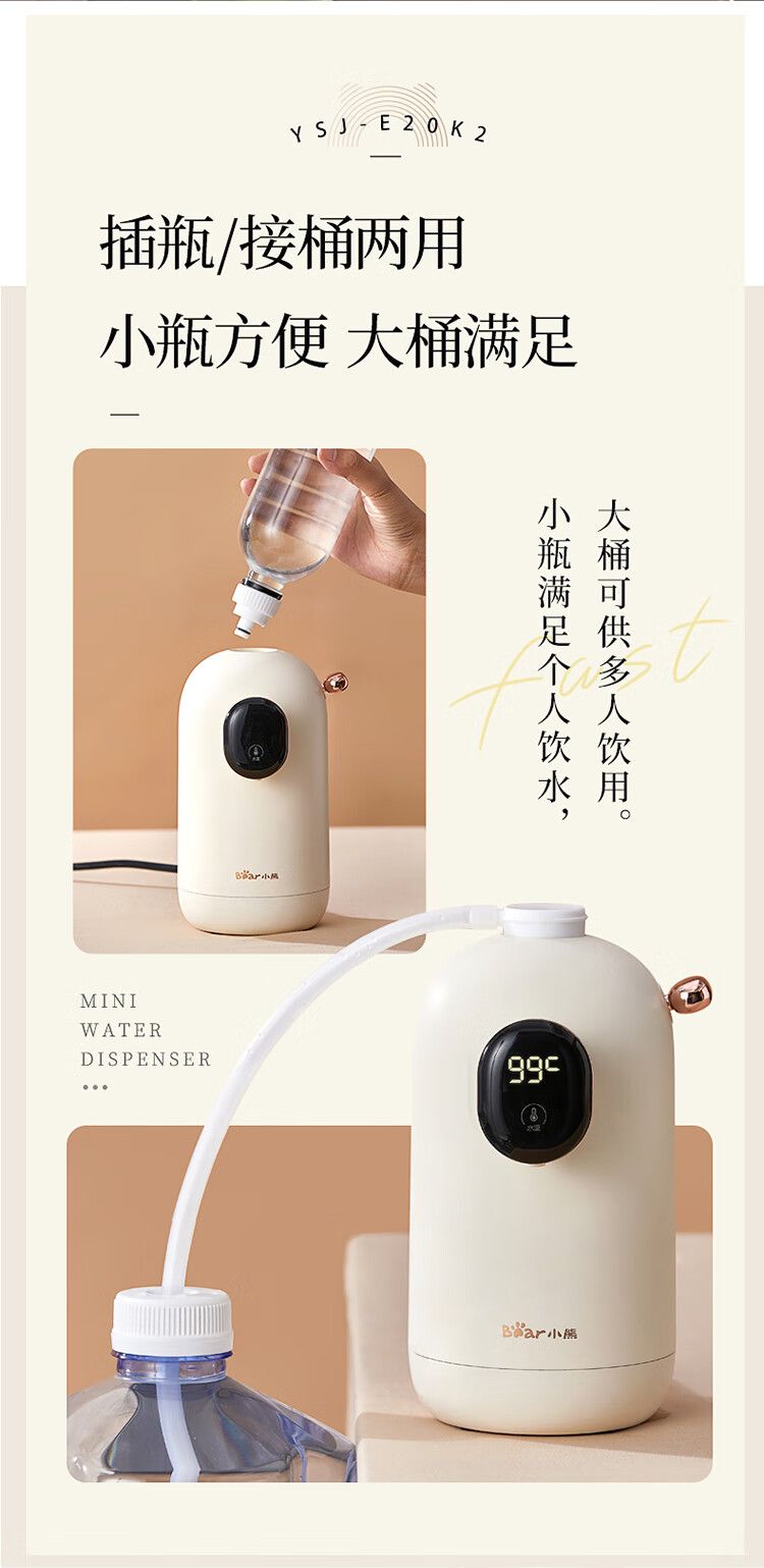小熊即热式饮水机YSJ-E20K2 便携式台式桌面旅行小型迷你桶装水抽水器
