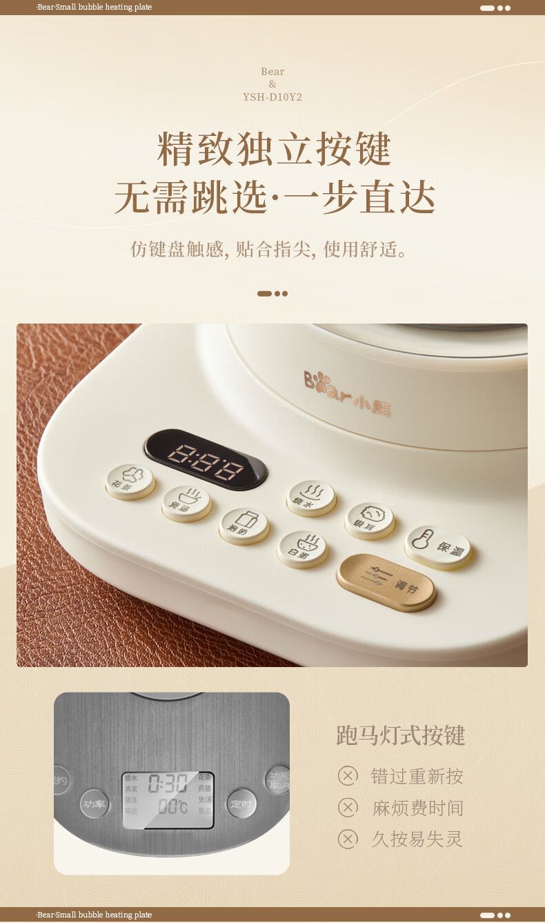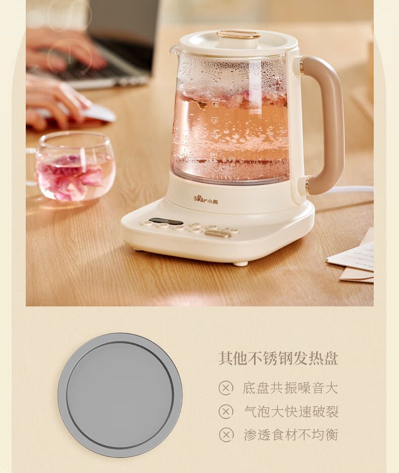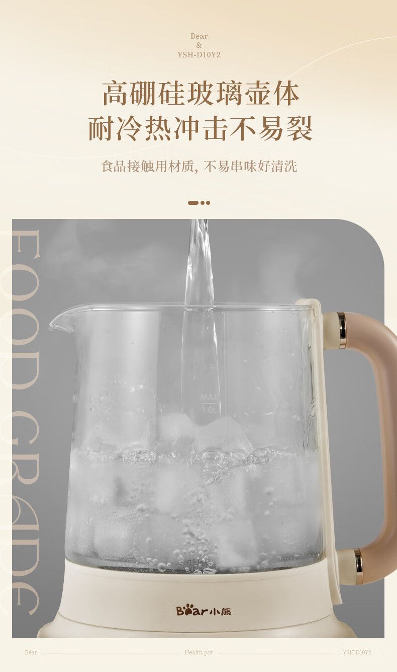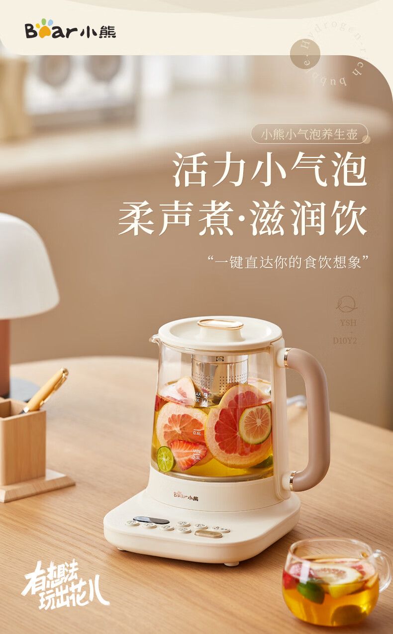 商品名称:小熊小气泡养生壶YSH-D10Y2 烧水壶 降噪涂层 1升迷你恒温花茶壶 带滤网